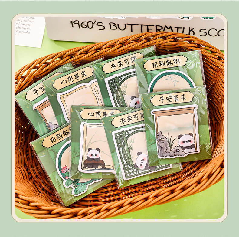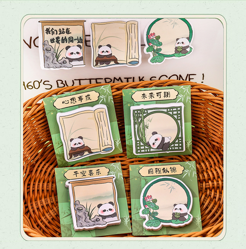 卡通熊猫便利贴开学季励志文字奖励文具小礼品学生可爱留言便签纸