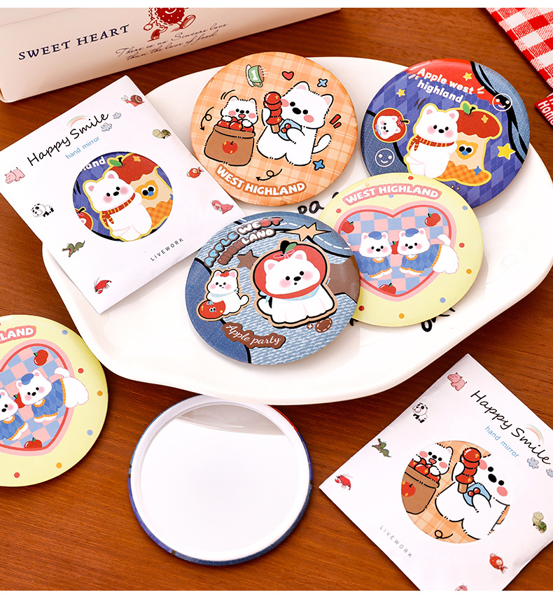 卡通西高地小镜子可爱小狗迷你随身单面小圆镜学生小礼物梳妆镜子