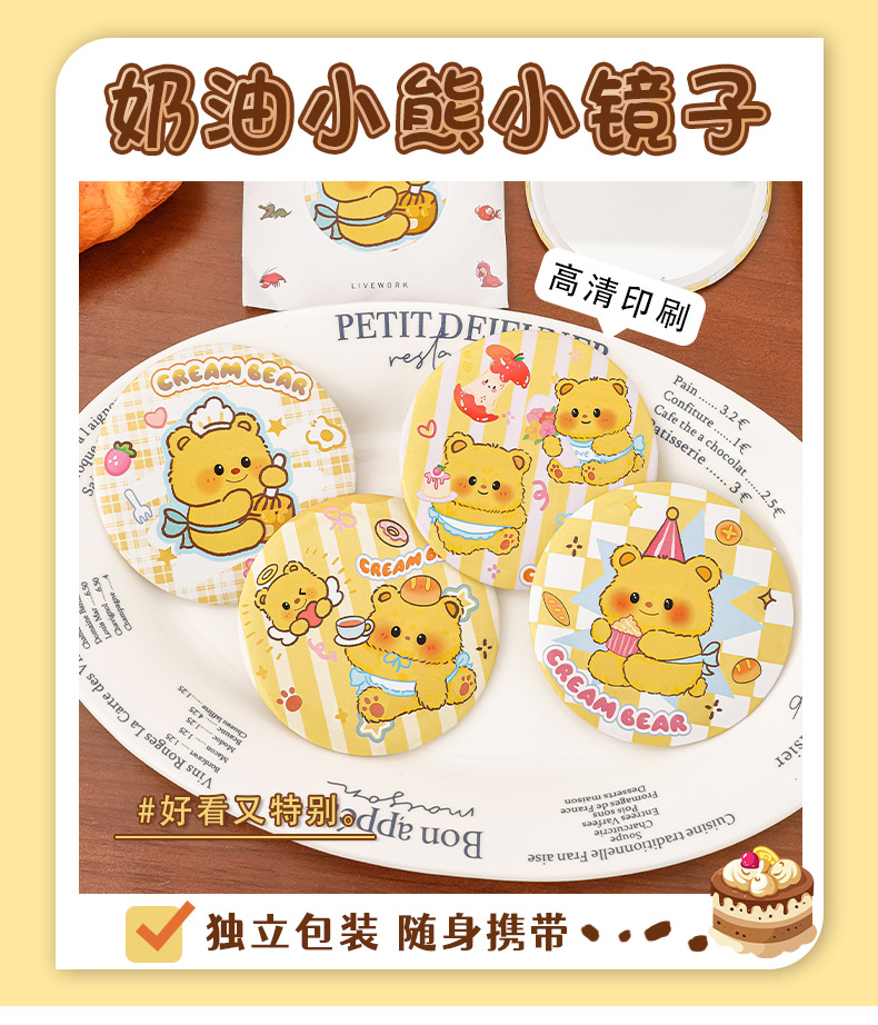 可爱小熊镜子卡通便携单面小圆镜学生礼物小镜子女生宿舍化妆镜