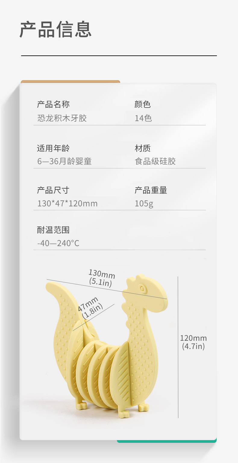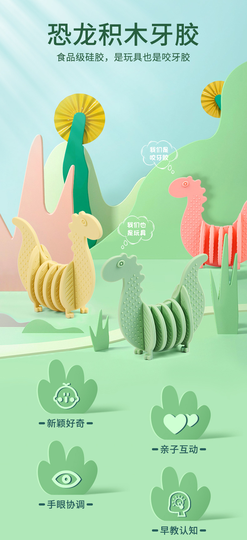 硅胶牙胶叠叠乐 婴儿恐龙宝宝牙胶安抚玩具防吃手可水煮批