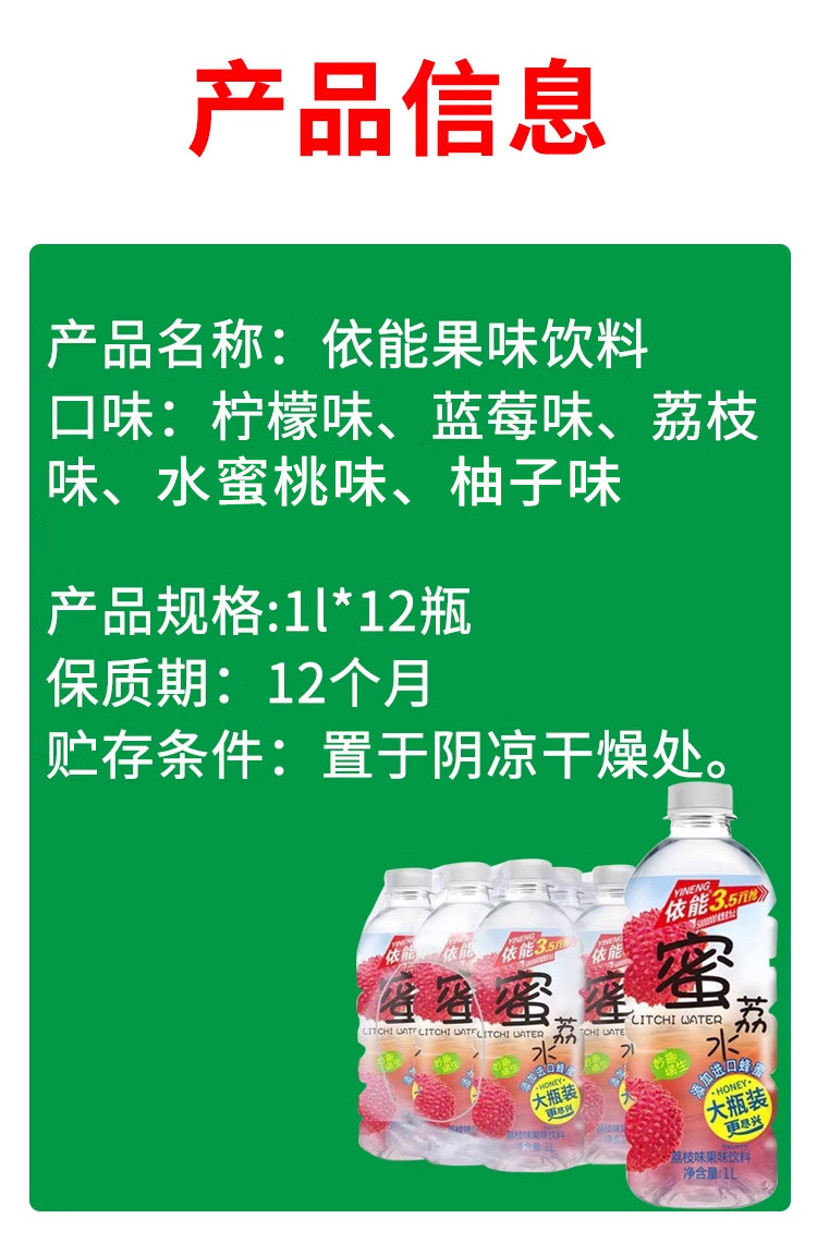 依能蜜桃水1L大瓶整箱装萝苹荔多口味蜜柠葡水果汁轻乳酸饮料品