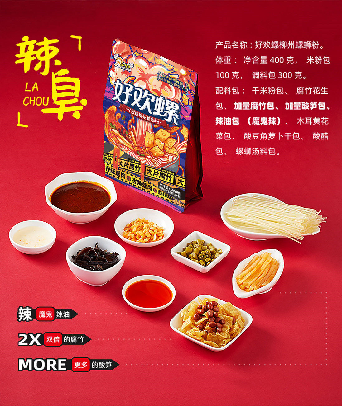 好欢螺螺蛳粉400加辣加臭原味混装广西柳州螺狮粉速食酸辣米粉