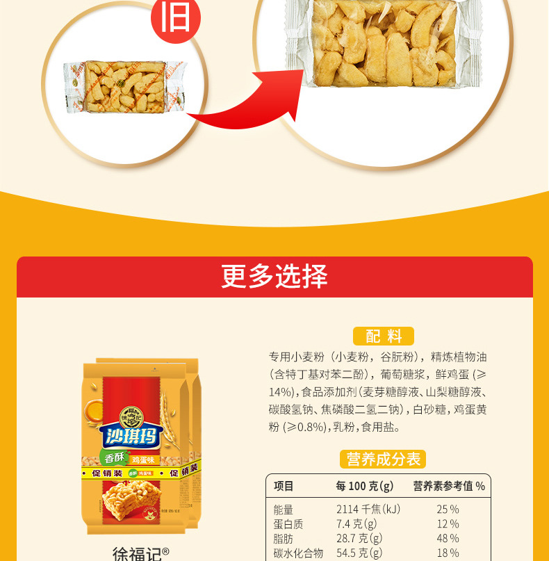徐福记沙琪玛香酥鸡蛋芝麻松软早餐萨其马糕点年货零食休闲小吃