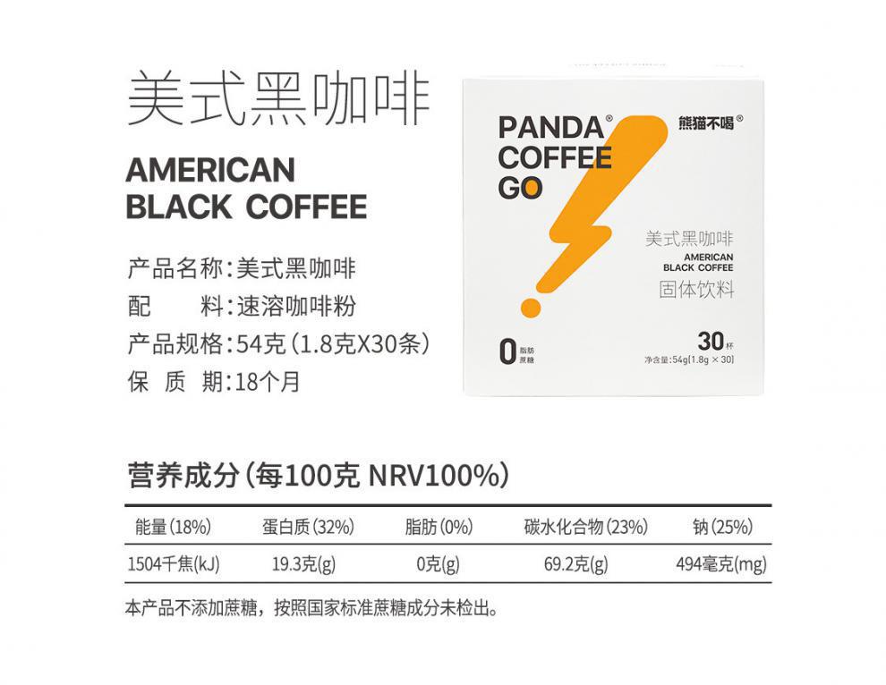 熊猫不喝黑咖啡冷泡速溶冻干浓缩咖啡粉健身美式意式0脂肪咖啡液