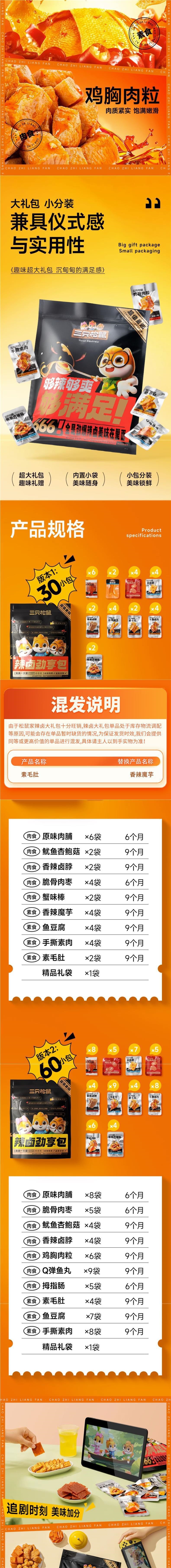 三只松鼠辣卤礼包100包零食大礼包整箱卤味肉类夜宵出游小吃