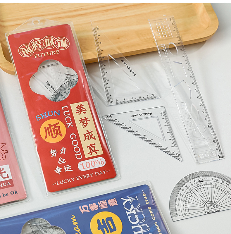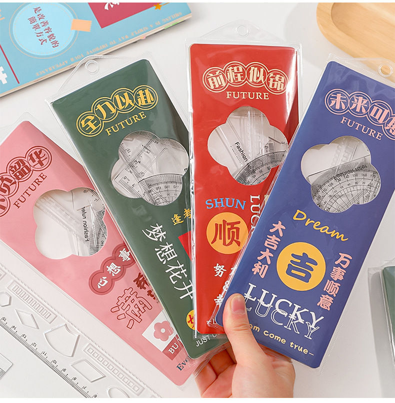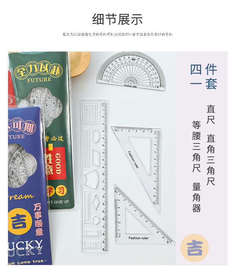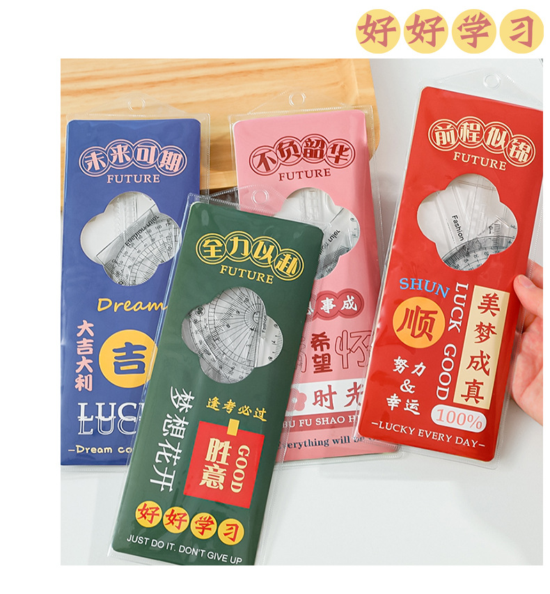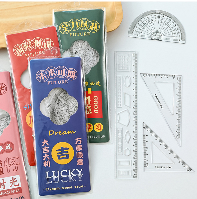 未来可期文字套尺小学生文具尺子儿童学习用品三角板四件套刻度尺
