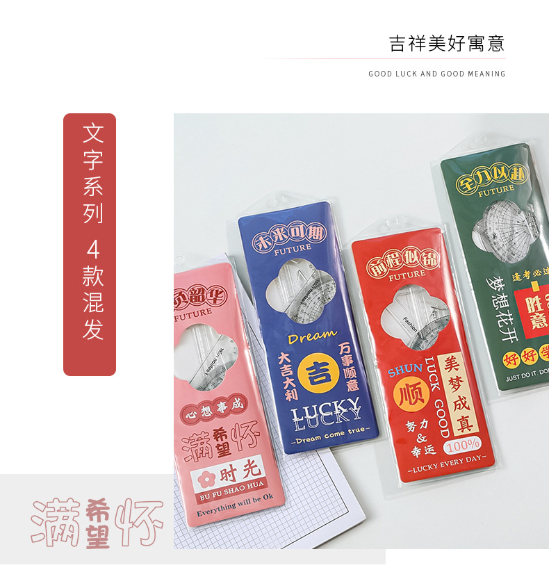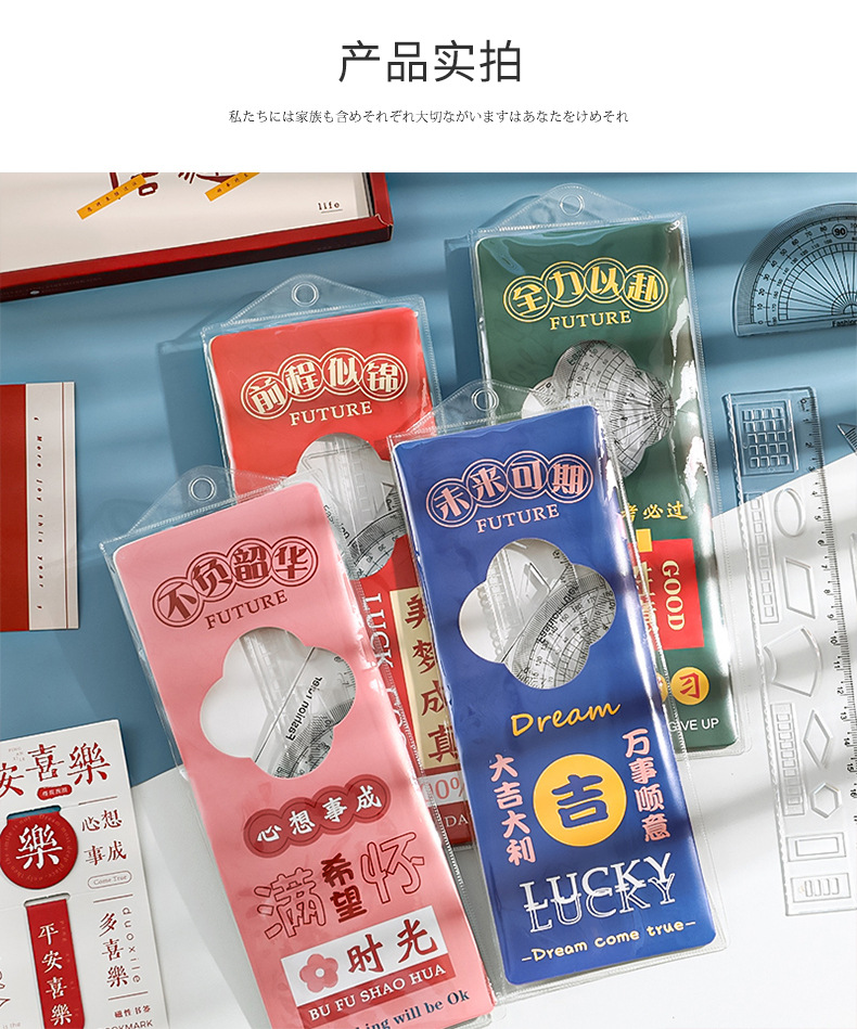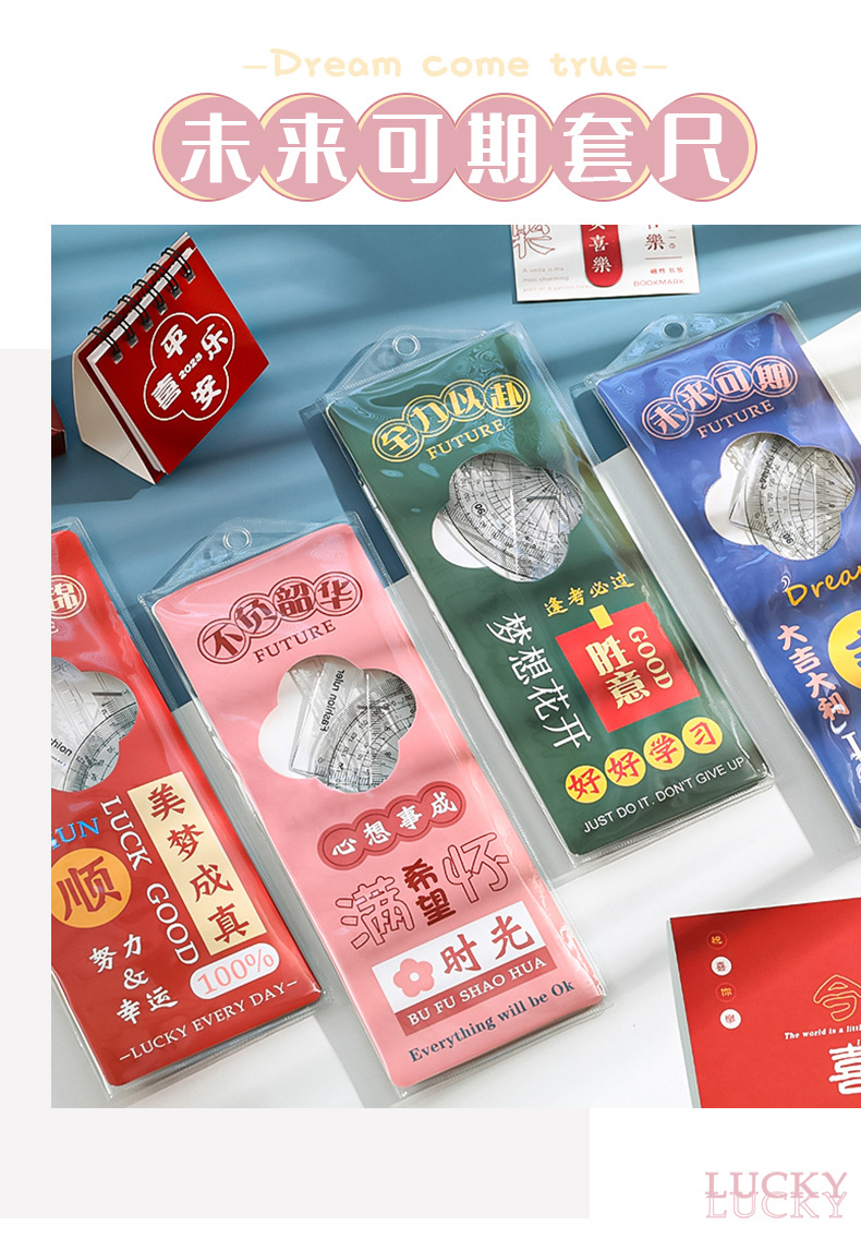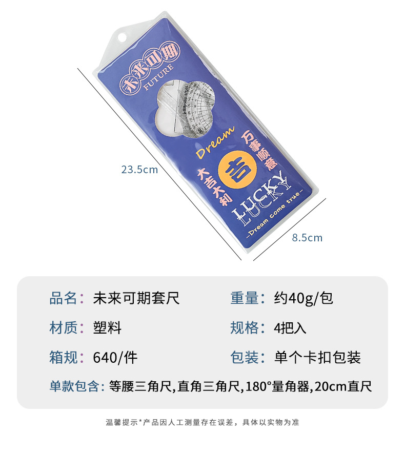 未来可期文字套尺小学生文具尺子儿童学习用品三角板四件套刻度尺