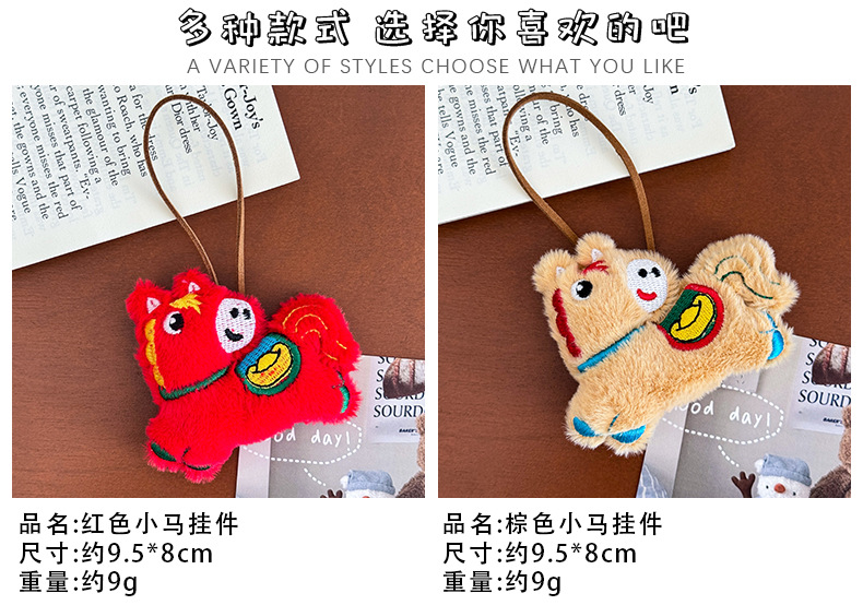 新年小马毛绒挂件卡通可爱公仔包包挂饰小玩偶学生礼物马年小礼品