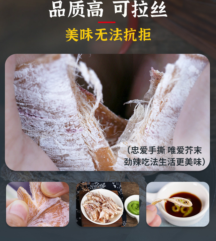 手撕烧烤鱿鱼干芥末即食碳烤鱿鱼休闲北海鱿鱼干批发尤鱼零食批发