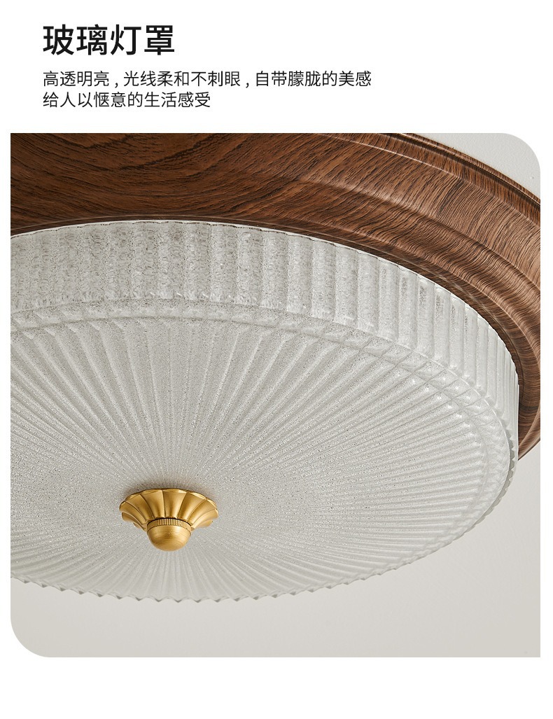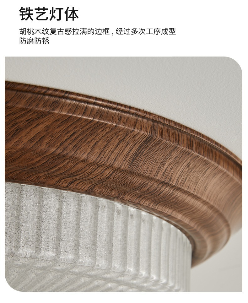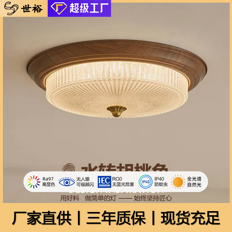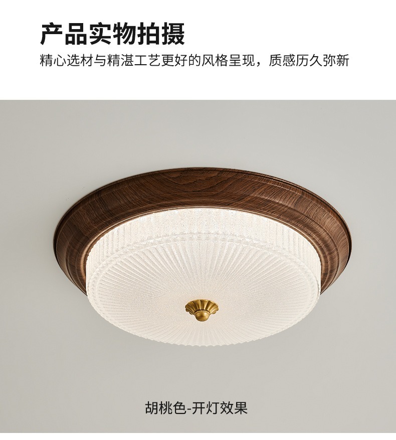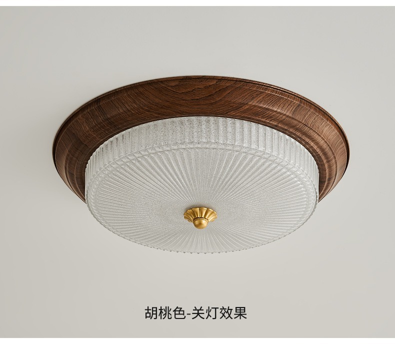 中古风卧室吸顶灯胡桃色木纹主卧灯新中式复古侘寂风阳台过道灯具