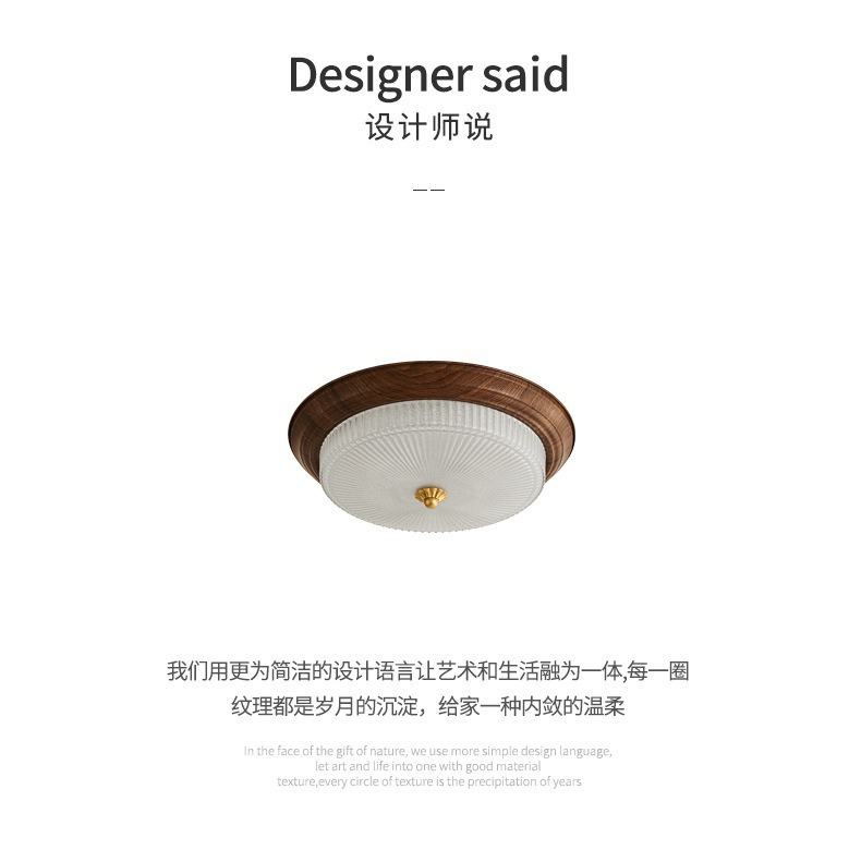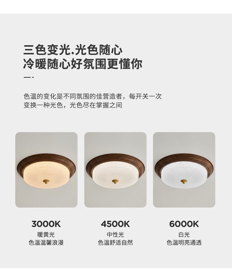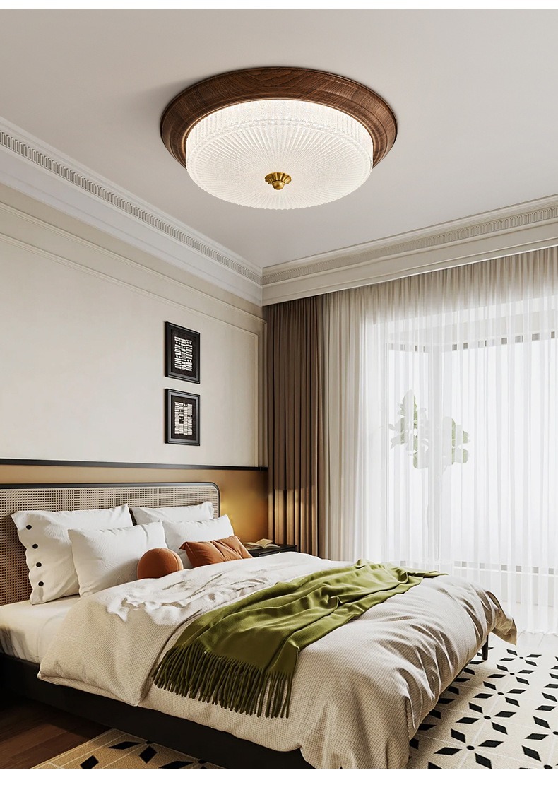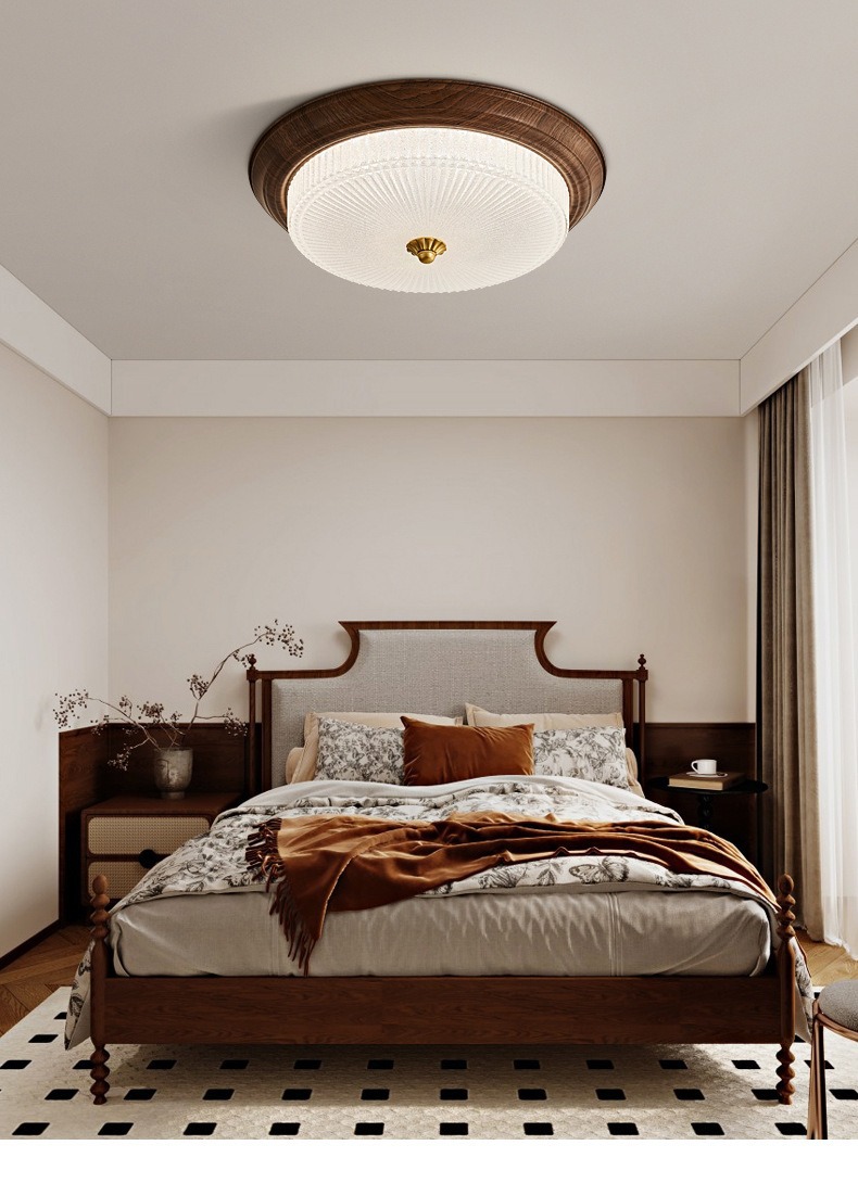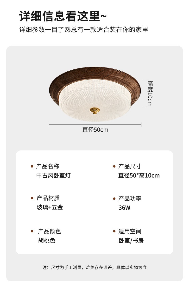 中古风卧室吸顶灯胡桃色木纹主卧灯新中式复古侘寂风阳台过道灯具