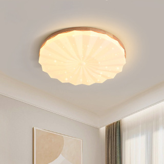 日式原木吸顶灯复古Vintage简约百褶超薄圆形北欧卧室书房led灯具