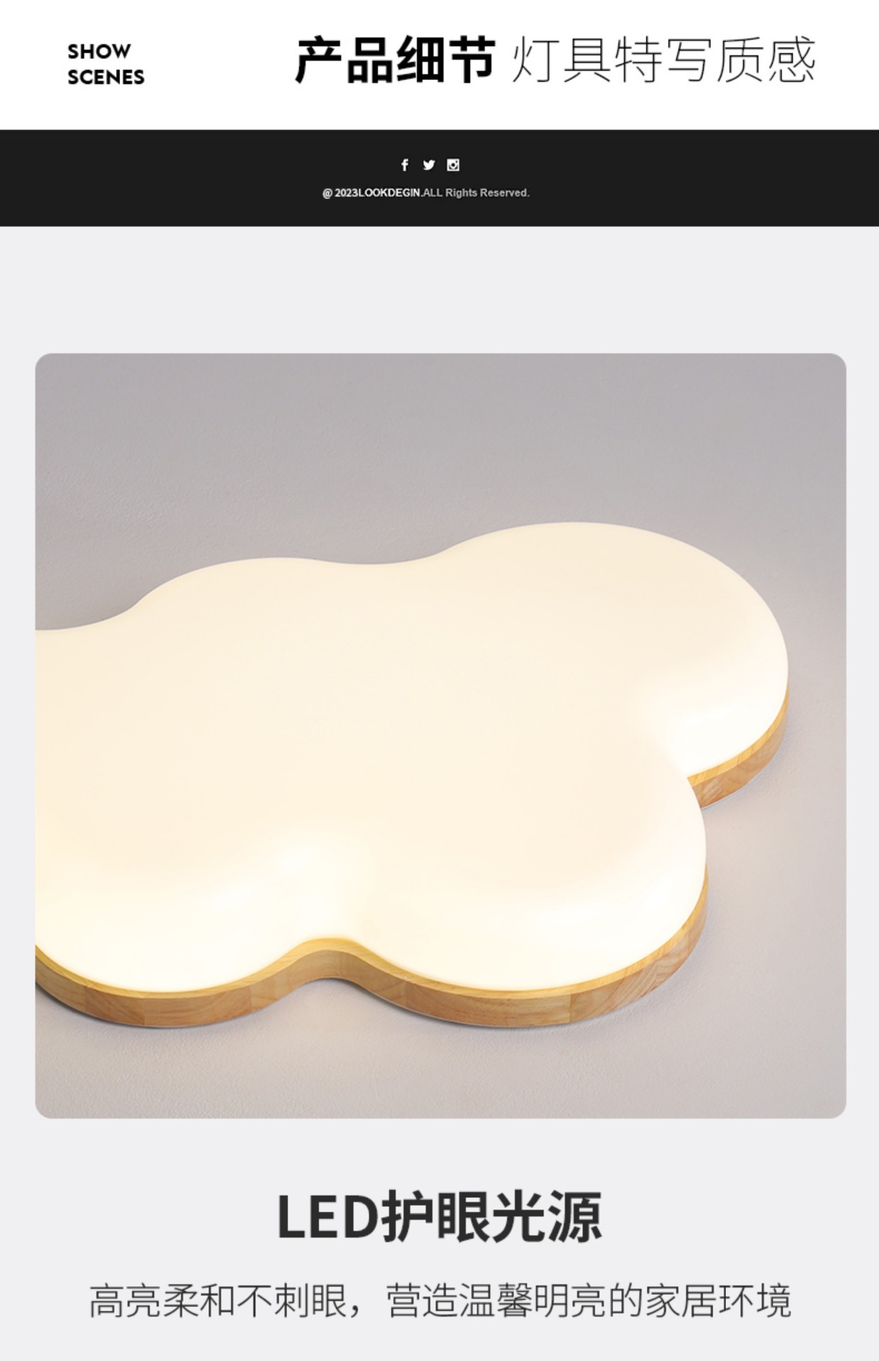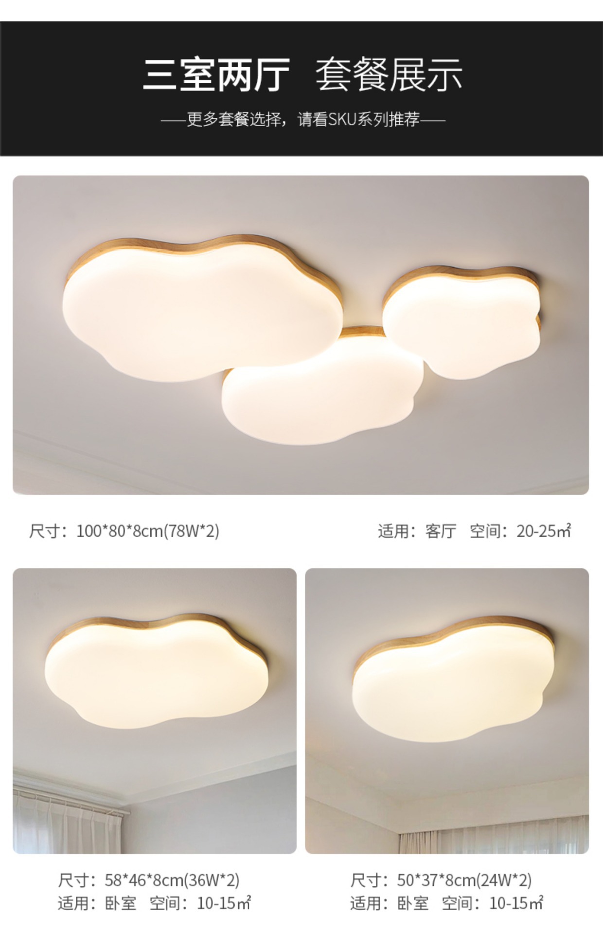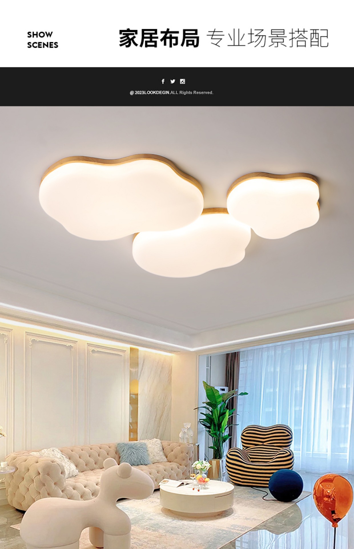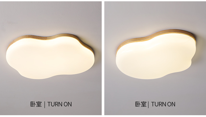 客厅灯原木奶油风云朵吸顶灯儿童全光谱护眼日式实木卧室房间灯具