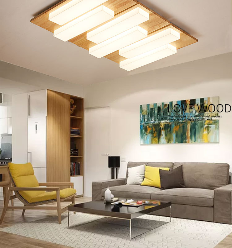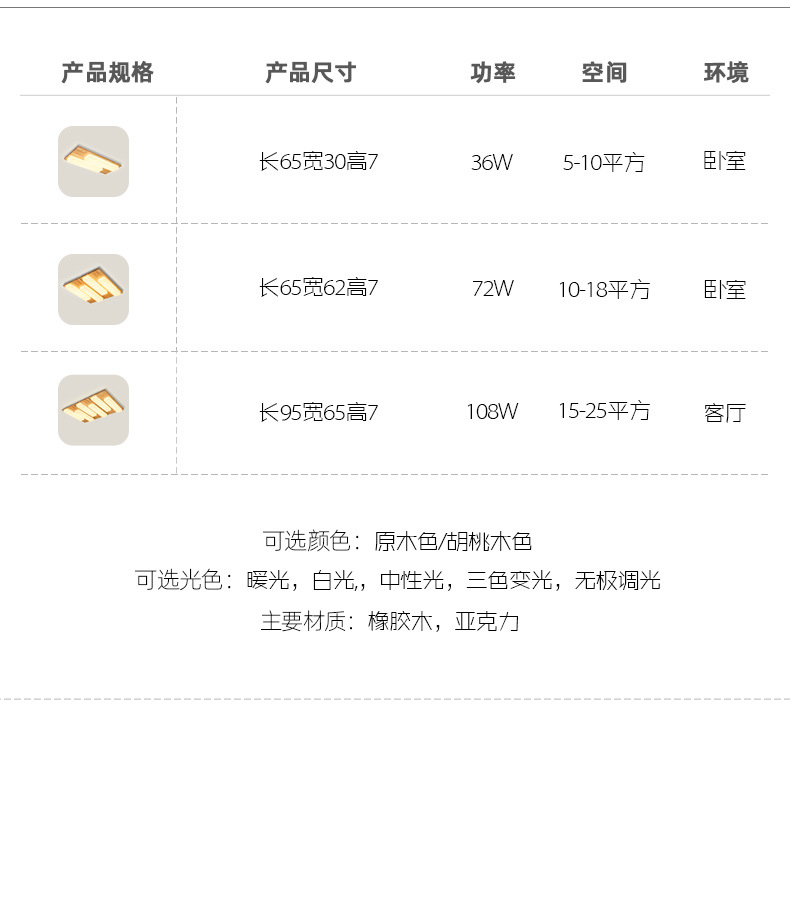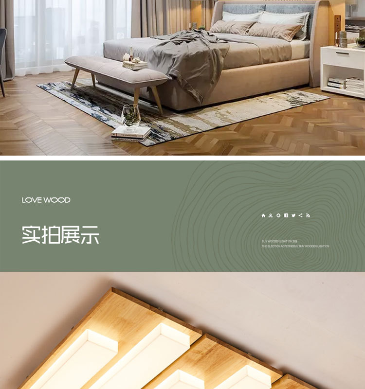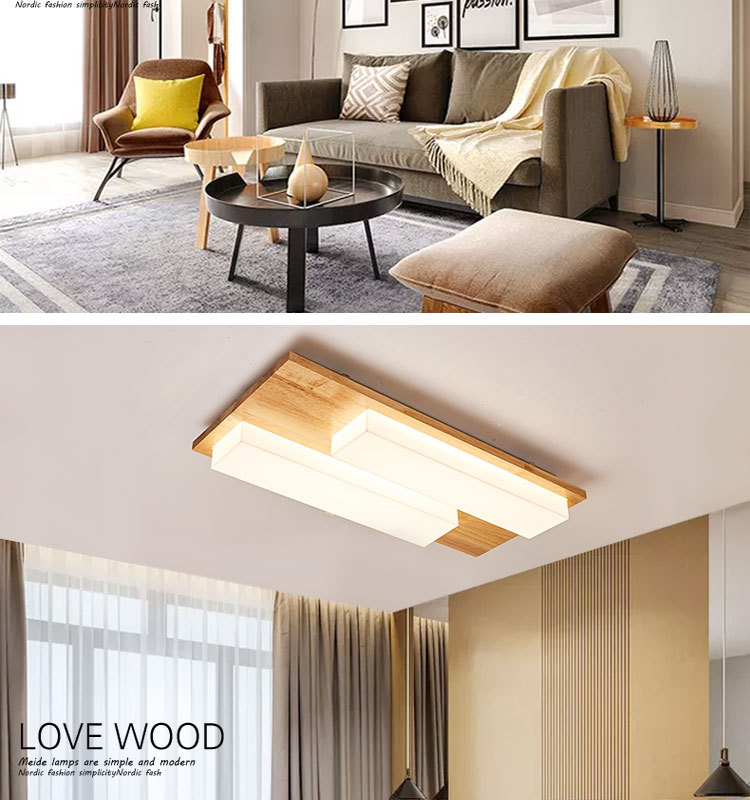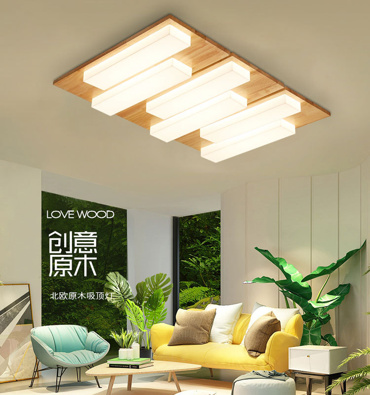 客厅灯护眼全光谱主卧室灯简约现代日式原木风吸顶灯木艺LED灯具