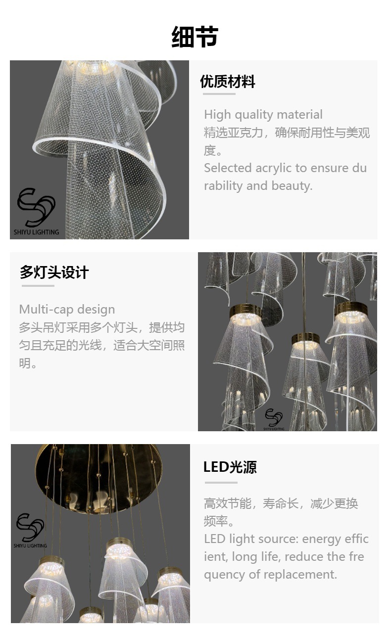 跨境专供亚克力轻奢床头吊灯现代极简网红玄关背景墙长线LED吊灯