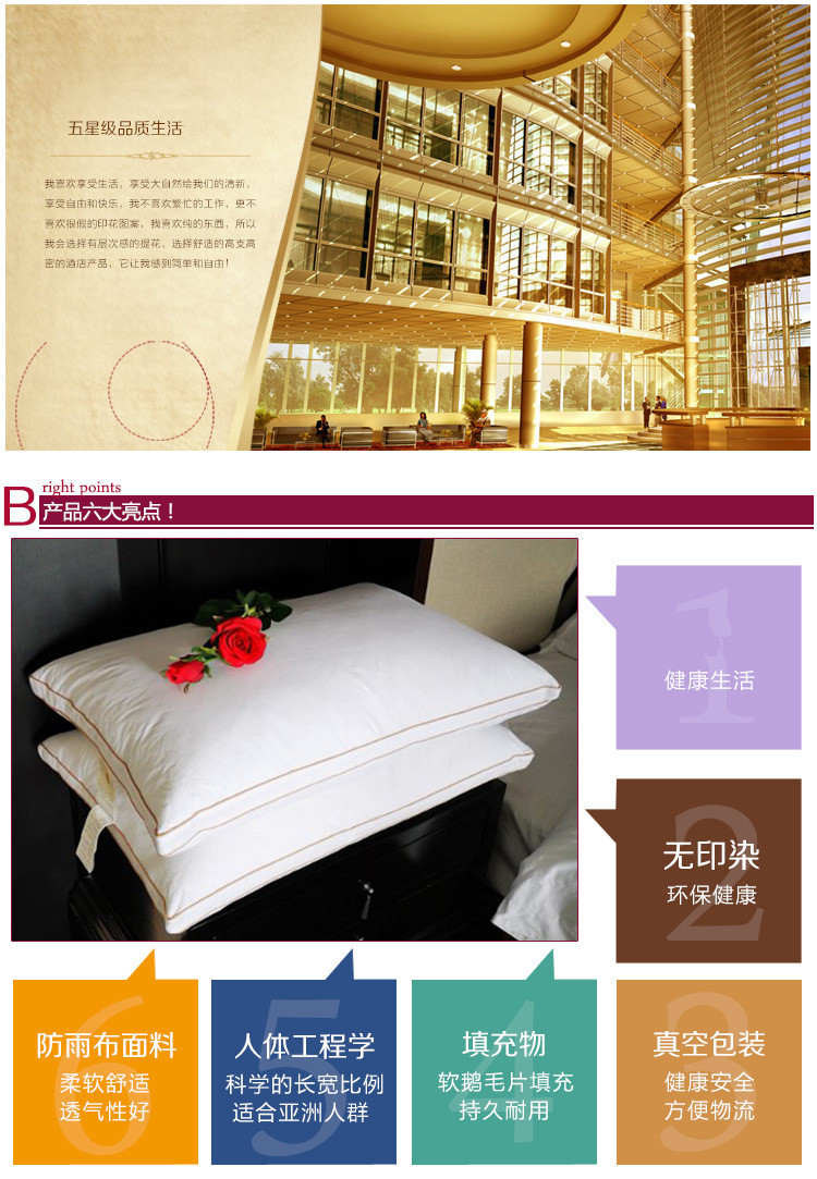 厂家直销 五星酒店高端民宿羽绒鹅绒鸭绒立体护颈枕芯