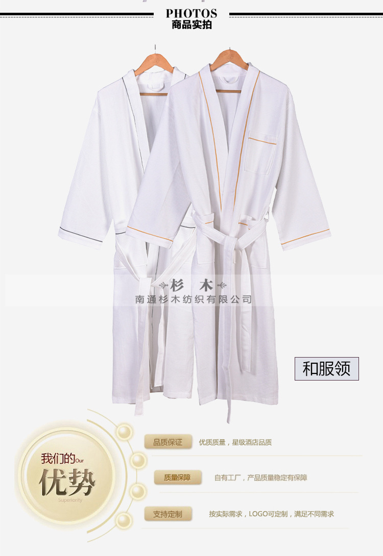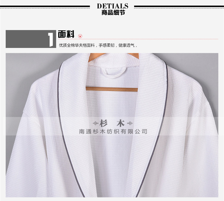 五星级会所酒店宾馆浴袍 全棉纯棉白色华夫格睡袍桑拿浴衣