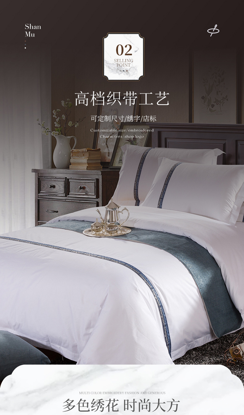酒店四件套床上用品60支纯棉白色宾馆酒店床单被套酒店民宿布草