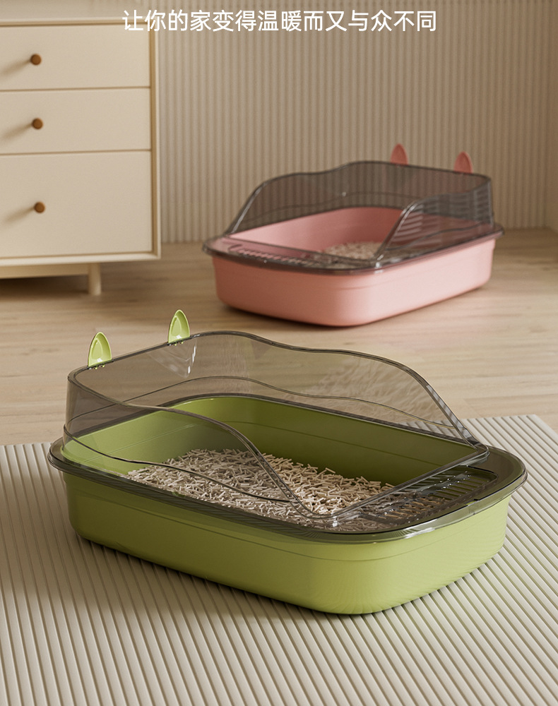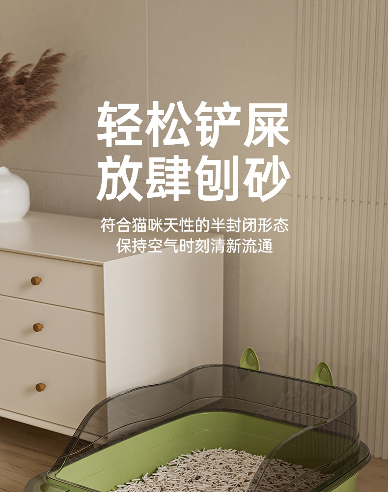 猫砂盆超大号防溅防臭半封闭猫屎盆开放式防水加厚猫厕所厂家直销