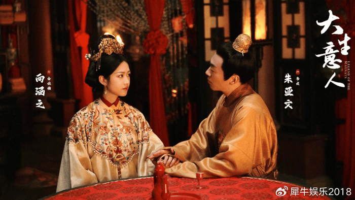 以当下在播剧中综合表现相对较强的古装传奇剧《大生意人》为例,虽说该剧主线是围绕陈晓饰演的晚清书生古平原的经商历程而展开,但在社交平台上流量更高的却是朱亚文和向涵之这对戏外相差18岁的“狼兔CP”。