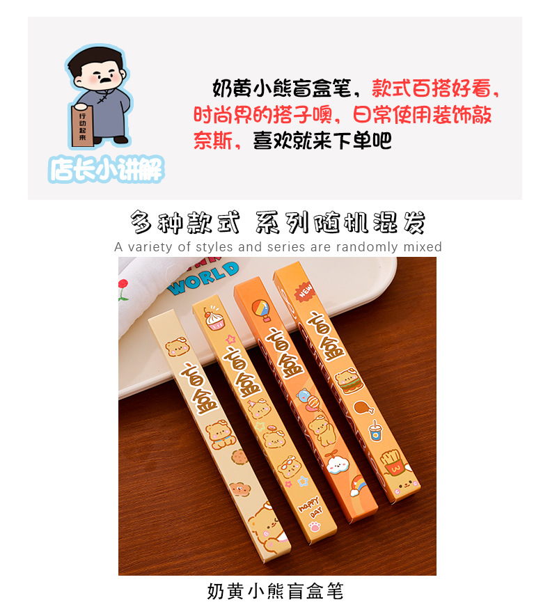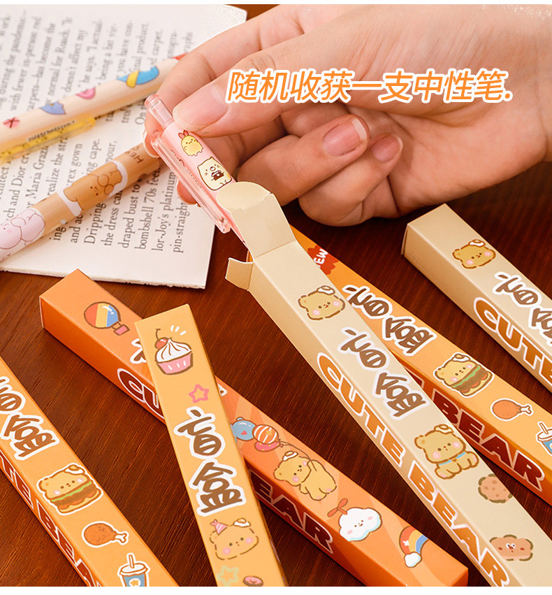 黄色小熊盲盒笔学生幸运盲盒学习文具奖励礼品文具套装盲盒中性笔