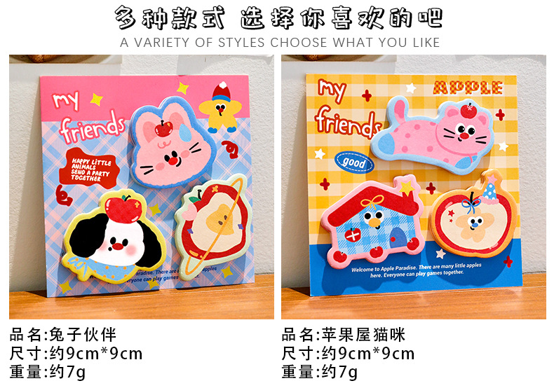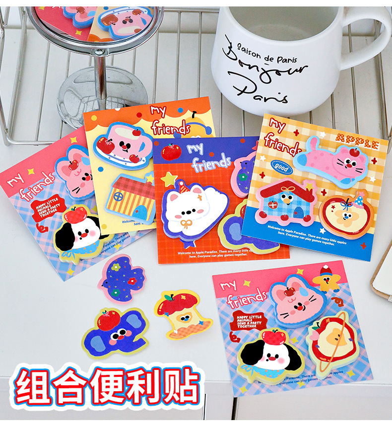 卡通西高地苹果便利贴异型三枚装n次贴粘性便签纸学生高颜值礼品