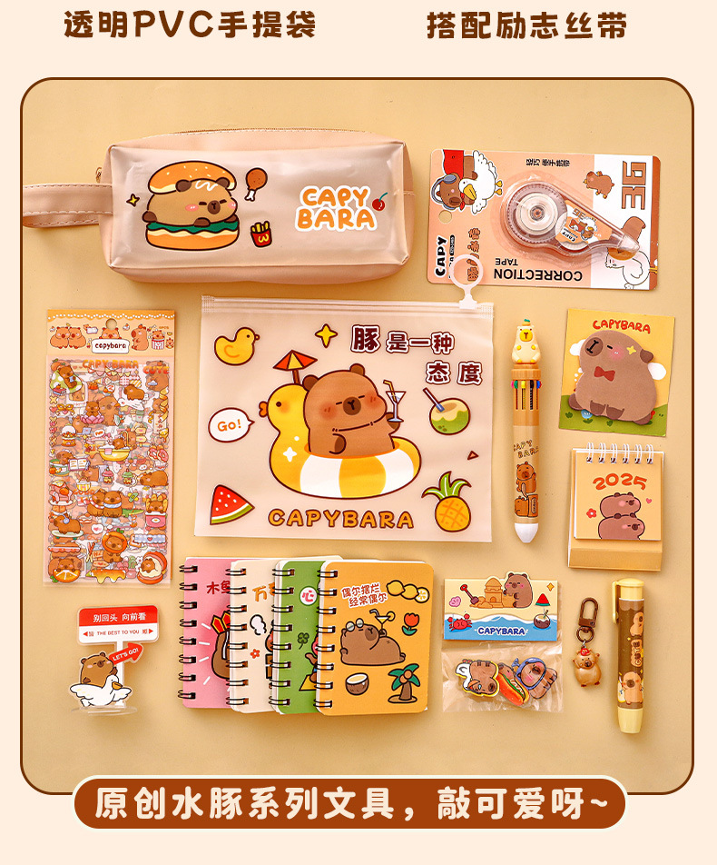 卡皮巴拉文具套装学生开学季大礼包小学生生日礼物高颜值水豚礼盒