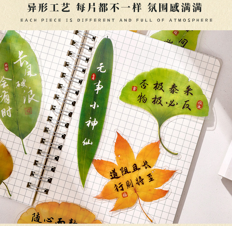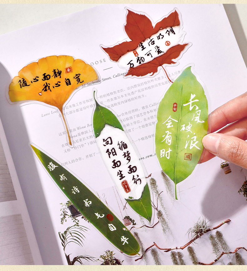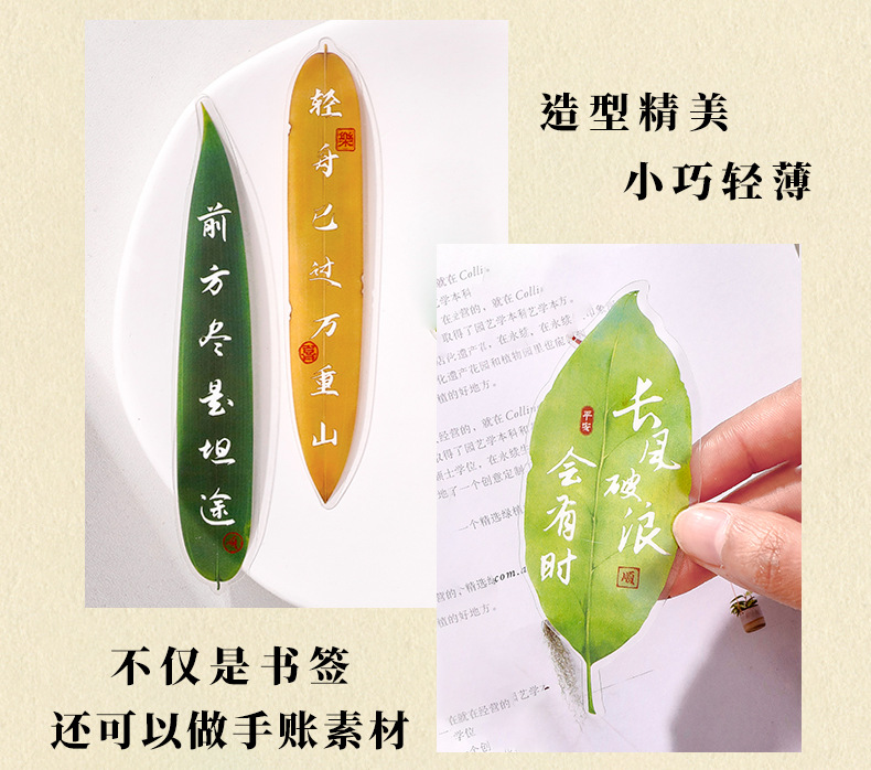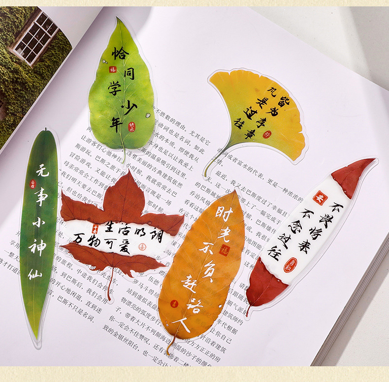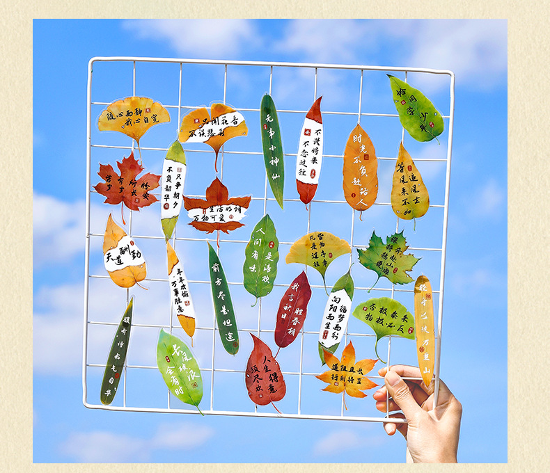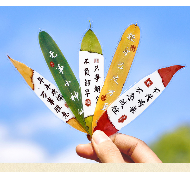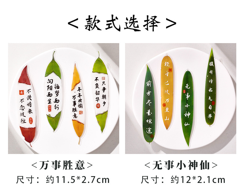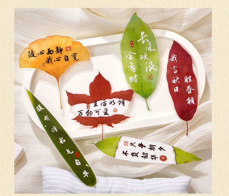 叶子文字书签古风树叶书法文字中国风复古标本学生diy礼品书签夹