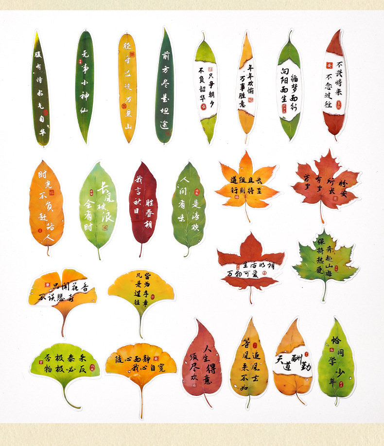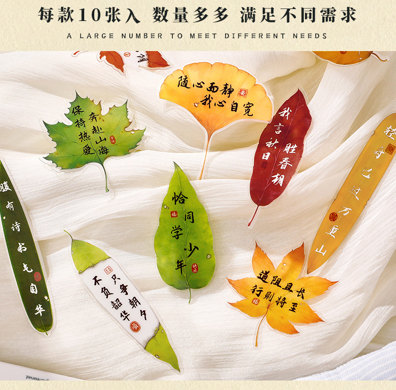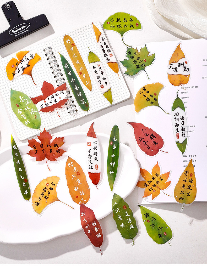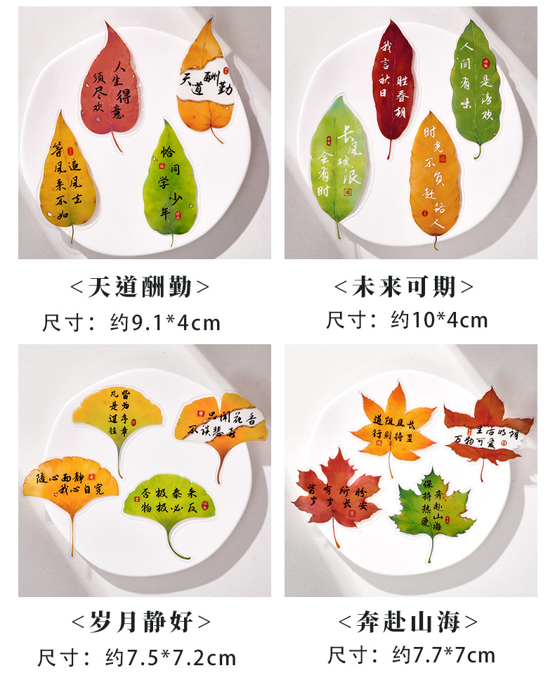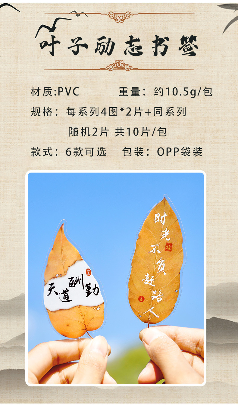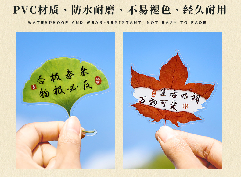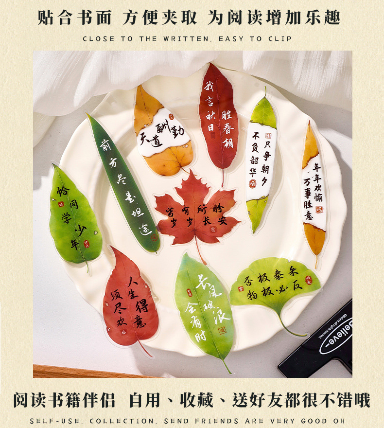 叶子文字书签古风树叶书法文字中国风复古标本学生diy礼品书签夹