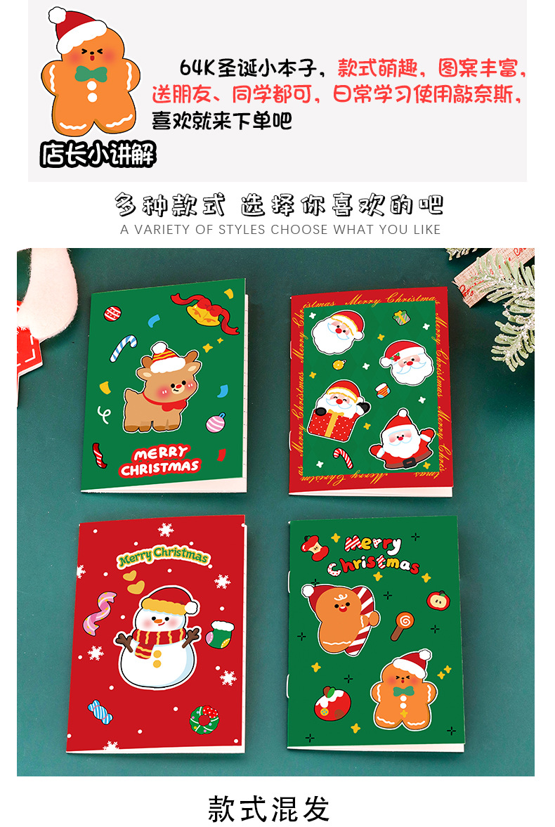 跨境圣诞64k小本子全班奖励文具礼物卡通记事本学生圣诞节笔记本