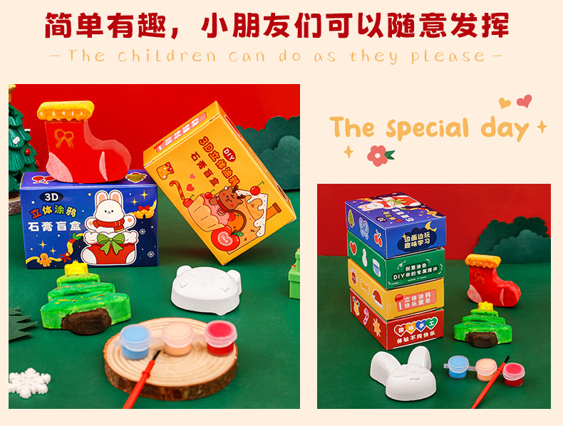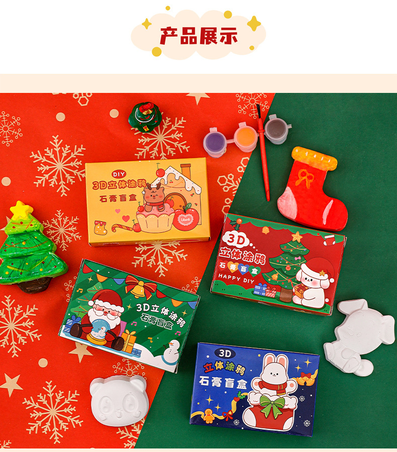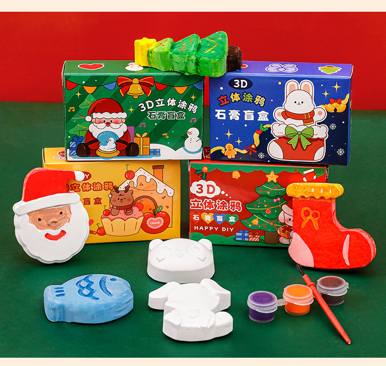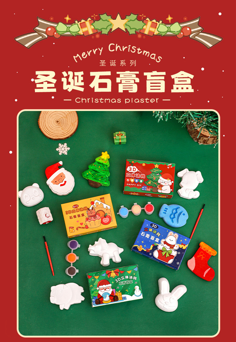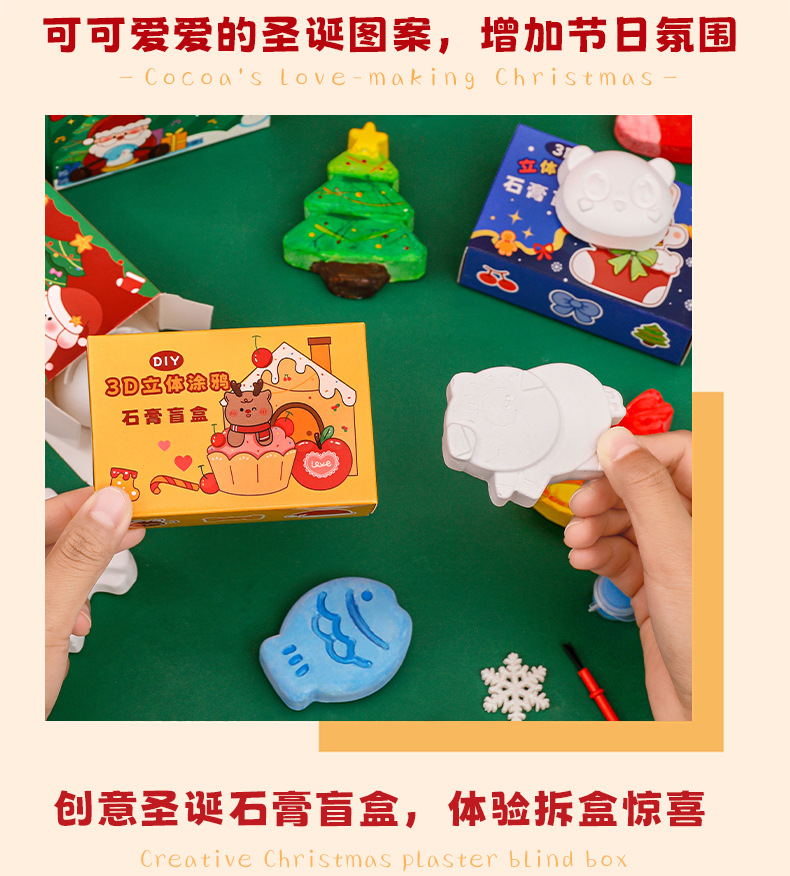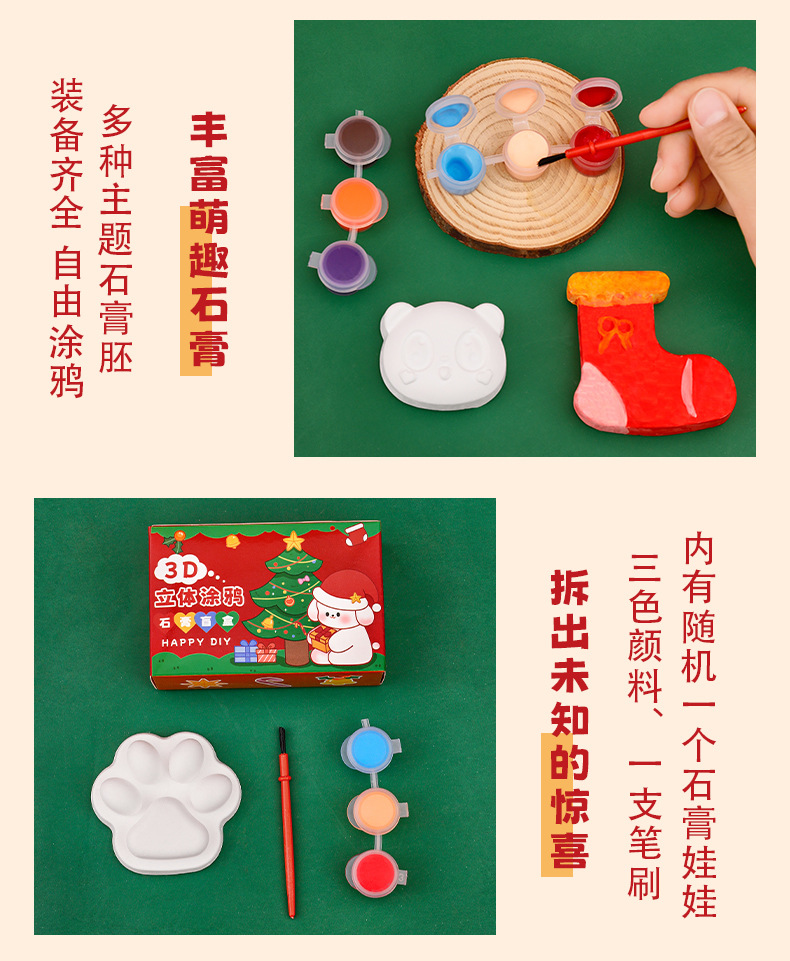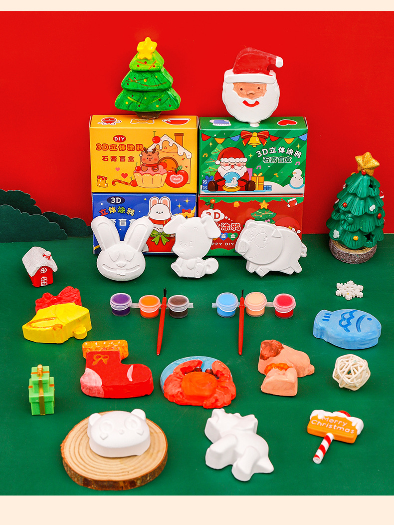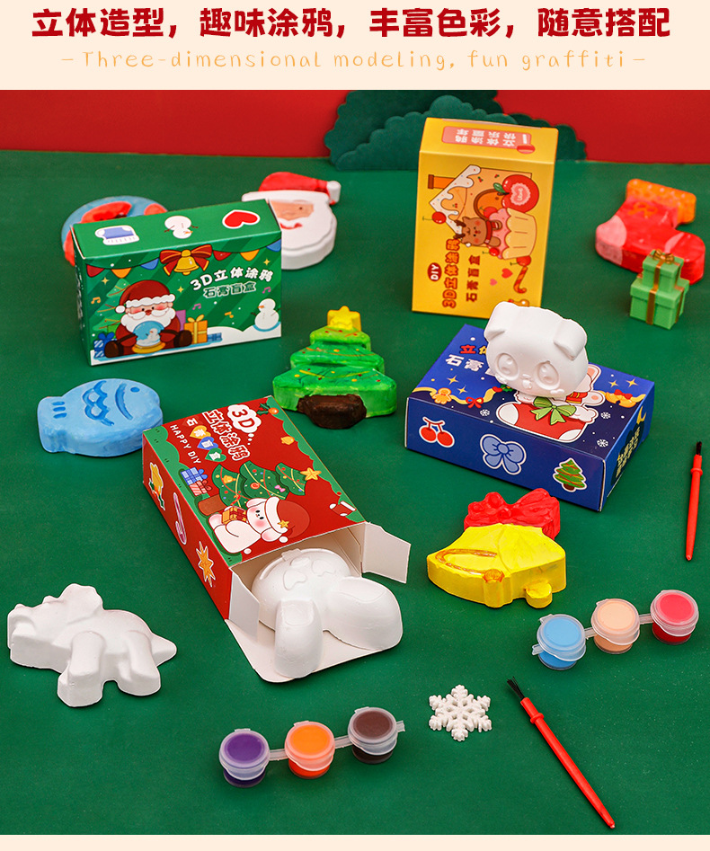 圣诞节石膏娃娃幼儿园儿童diy涂色小礼物学生圣诞节礼品涂鸦石膏