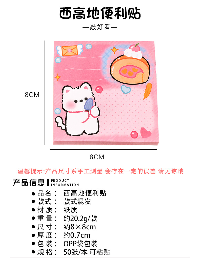西高地便利贴可爱高颜值方形便签本学生文具礼品粘性高级感便签