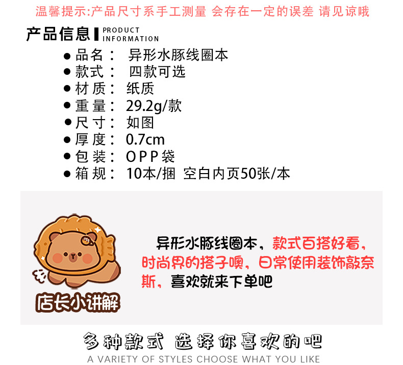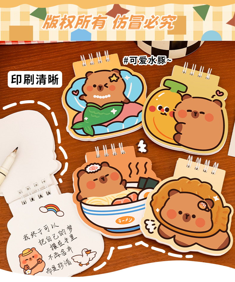 卡皮巴拉异型线圈本可爱上翻空白记事笔记本学生文具奖品记事本
