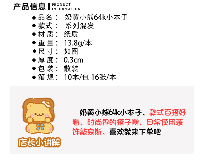 黄色小熊小本子可爱高颜值卡通64k软面抄小学生文具小礼品记事本