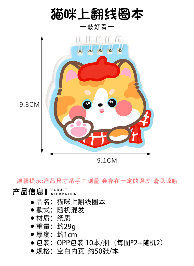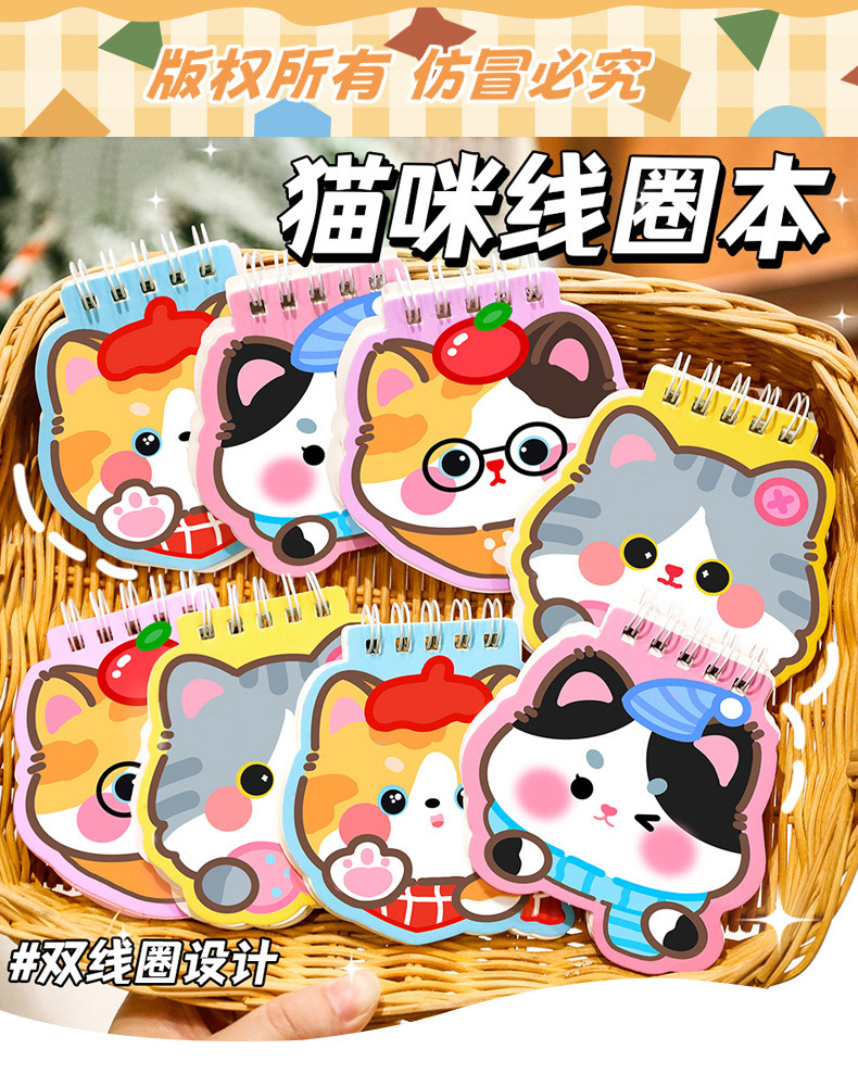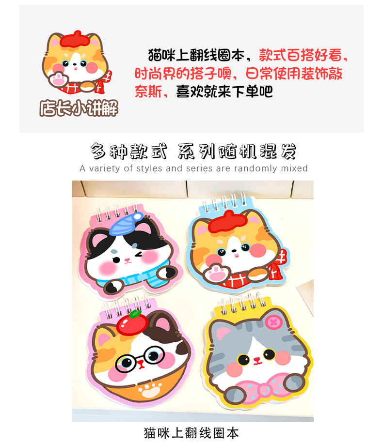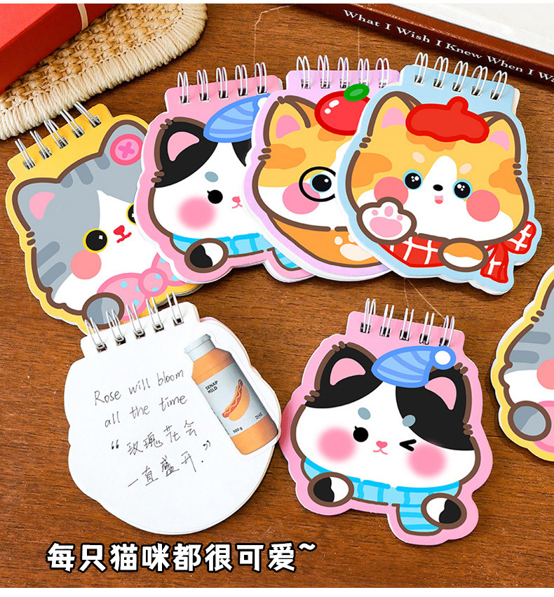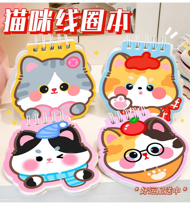 跨境猫咪线圈本卡通异型上翻空白便签本学生文具礼物小礼品记事本