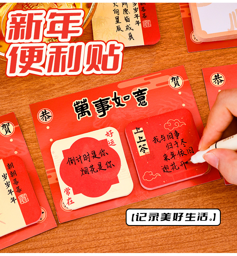 新年文字便利贴创意组合祝福便签纸n次贴学生新年文具小礼品便签