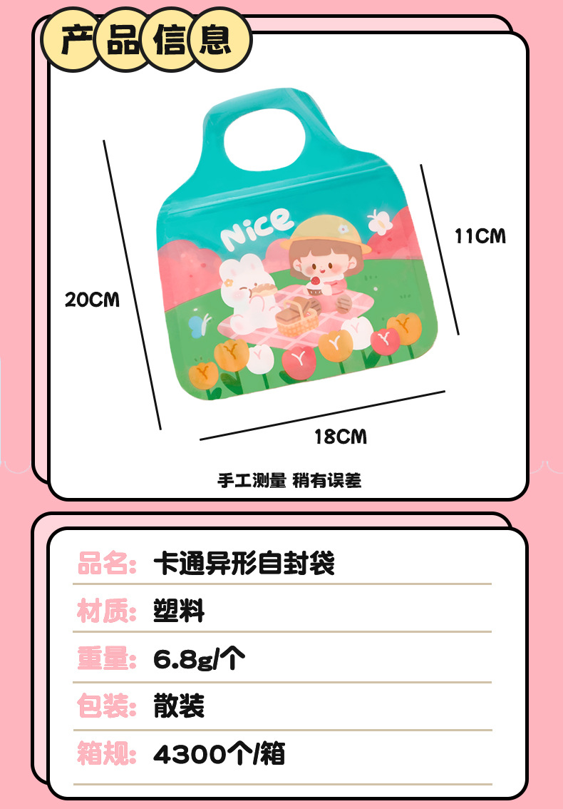 卡通异型自封袋 儿童手提收纳袋零食包装袋学生节日礼品分装袋子