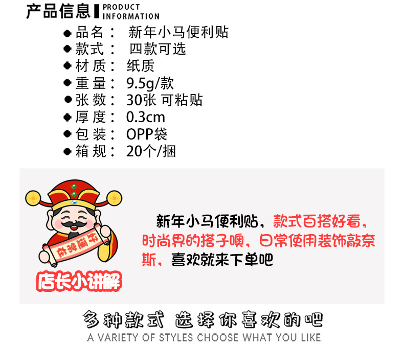 马年便利贴可爱春节过年n次贴便签纸学生礼物小礼品卡通新年便签