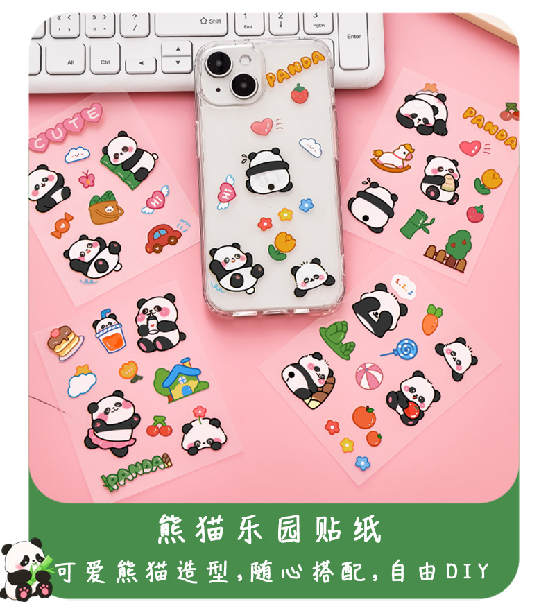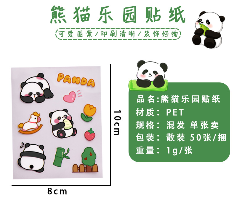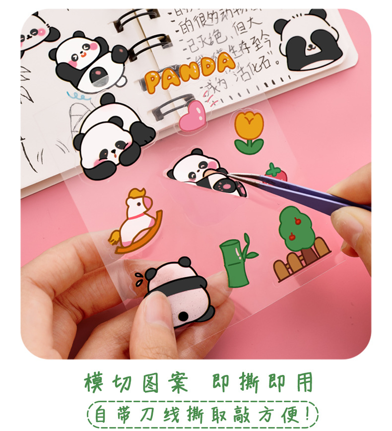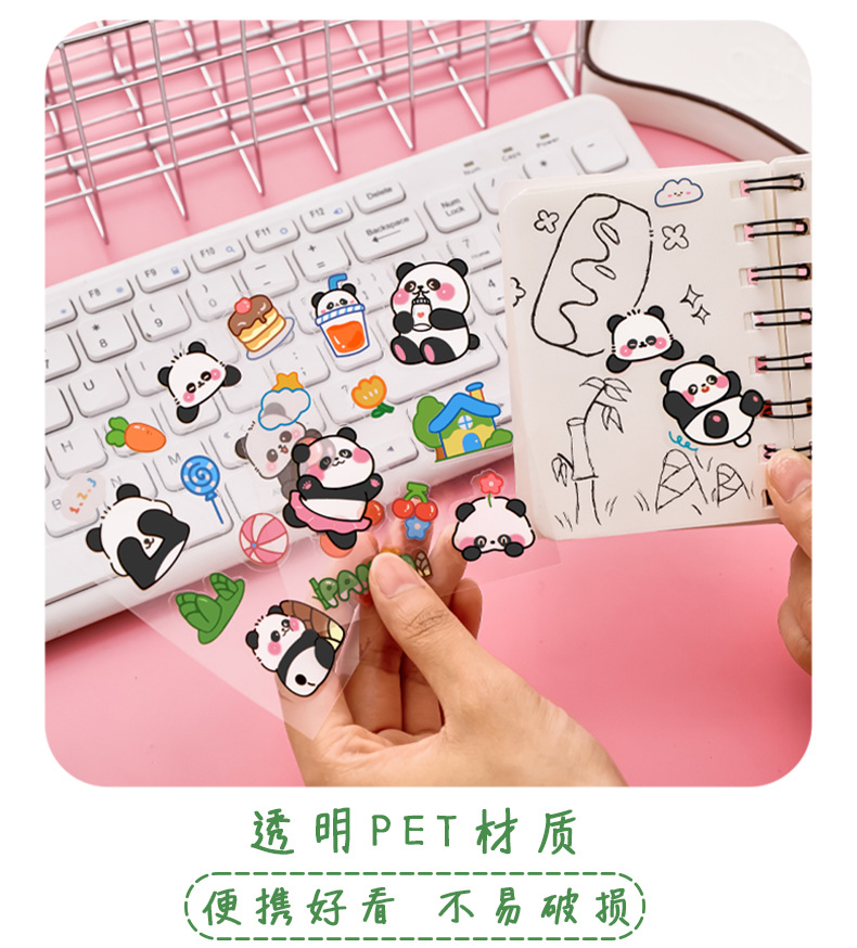 可爱熊猫贴纸儿童diy手账素材小贴纸学生奖品礼物pet咕卡水杯贴画