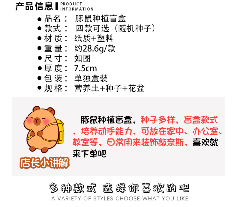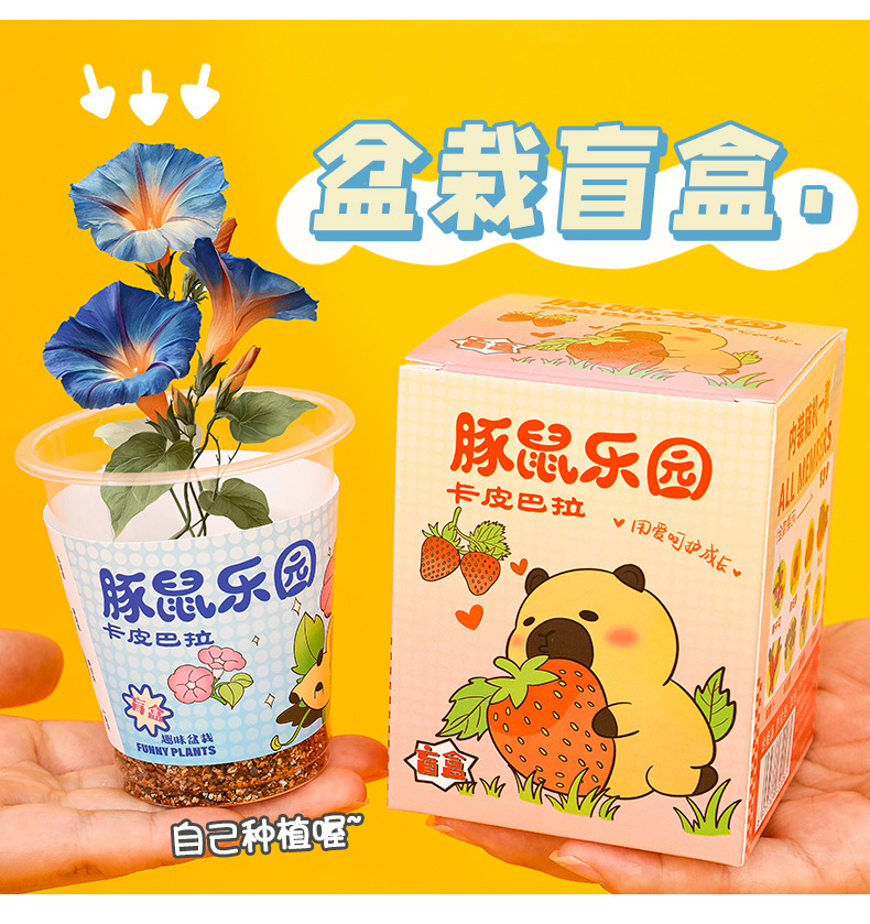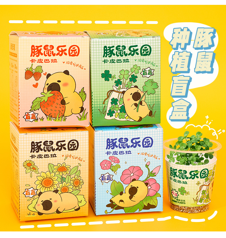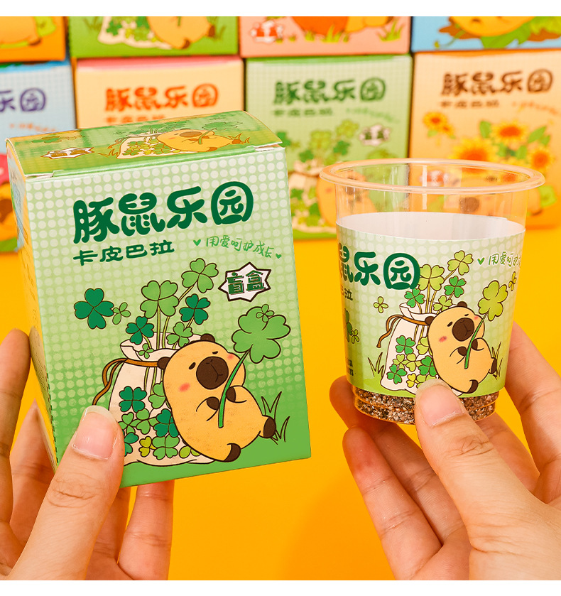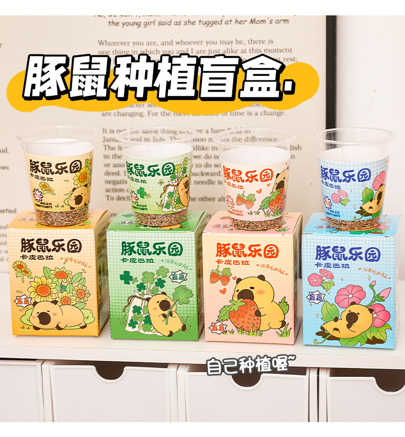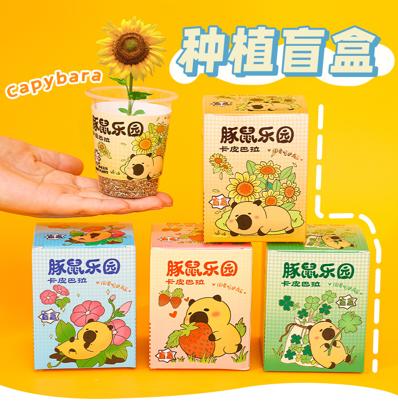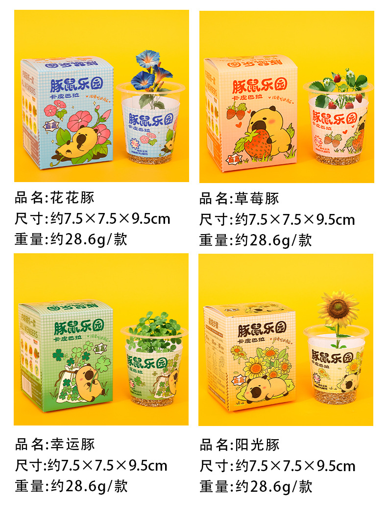 卡皮巴拉盆栽儿童种植小盆栽水豚桌面摆件幼儿园礼物创意小礼品