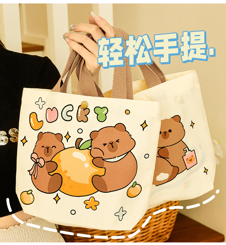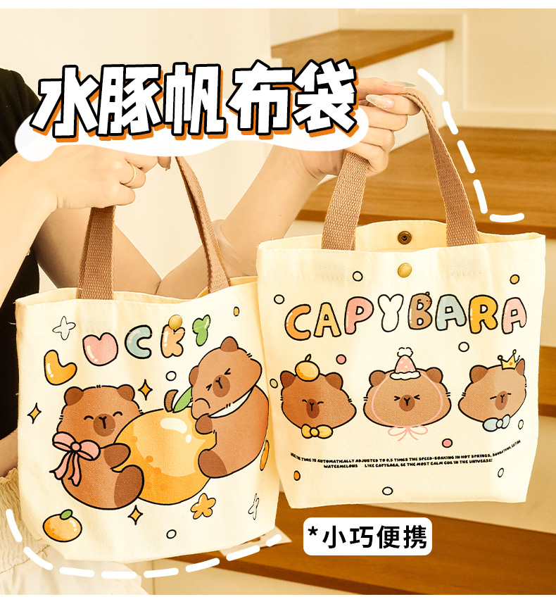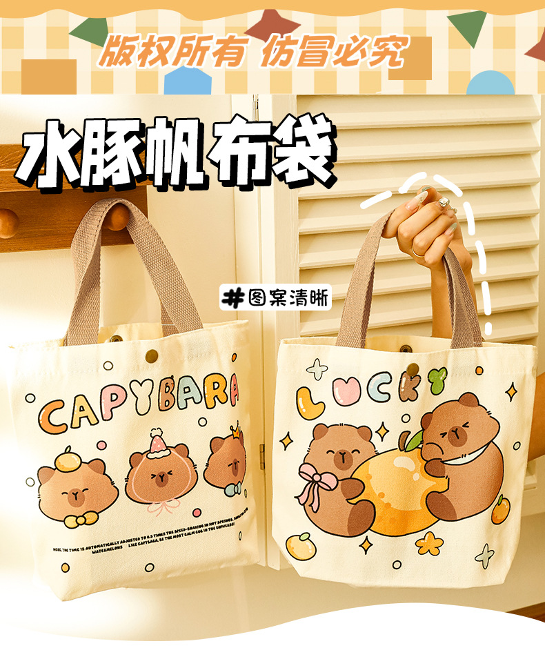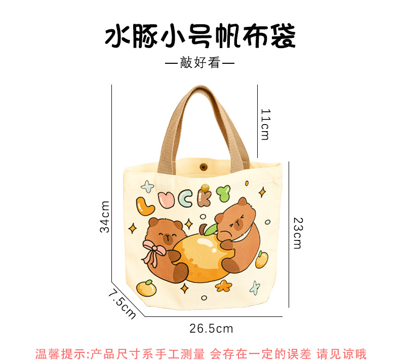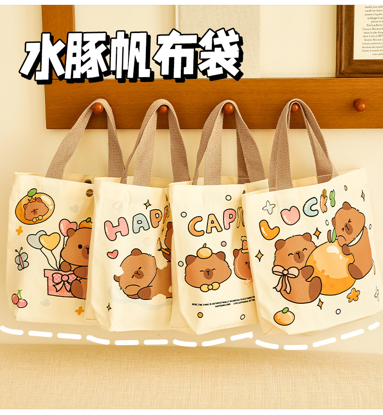 卡皮巴拉帆布袋女生高颜值可爱水豚手提袋学生伴手礼礼物包装袋子