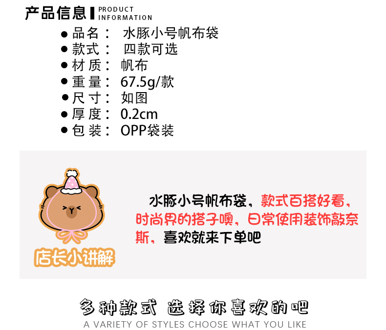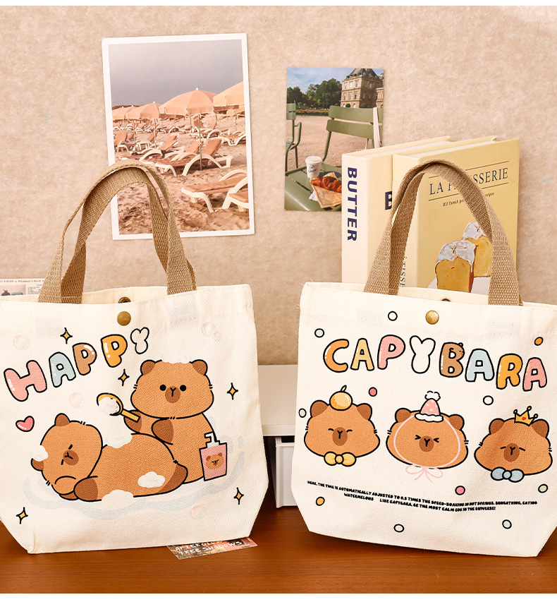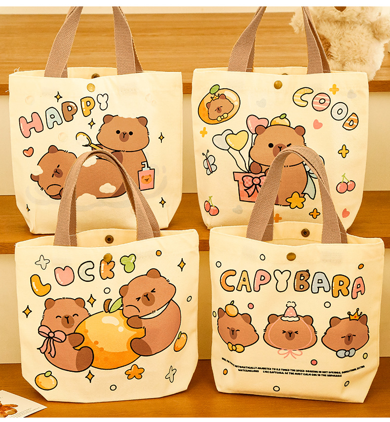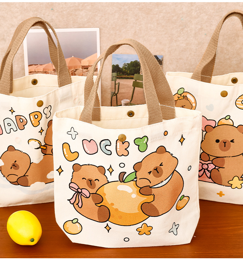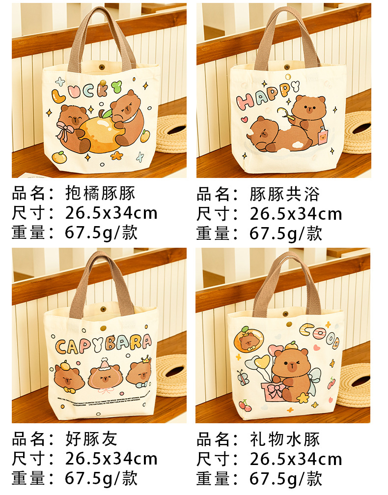 卡皮巴拉帆布袋女生高颜值可爱水豚手提袋学生伴手礼礼物包装袋子