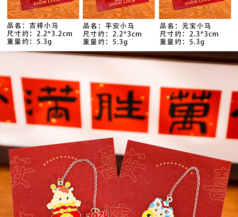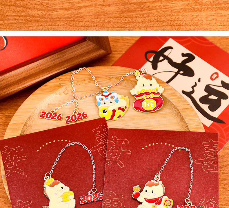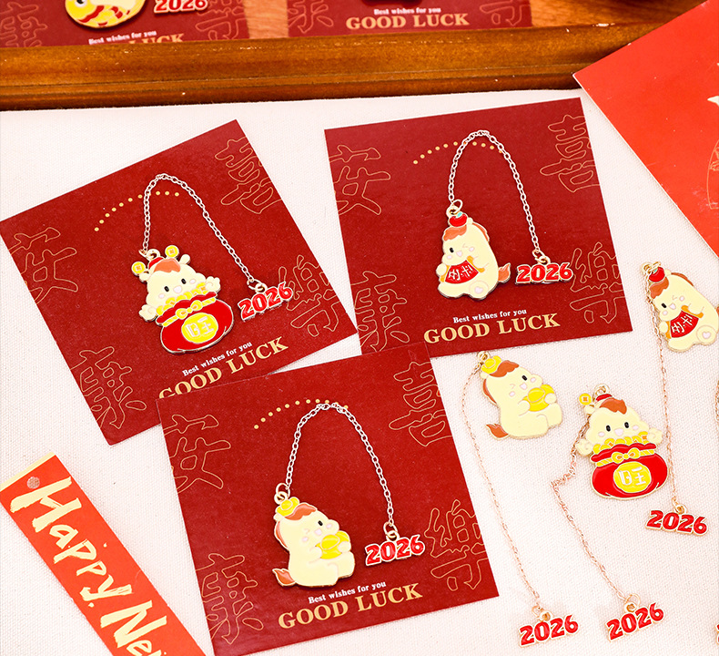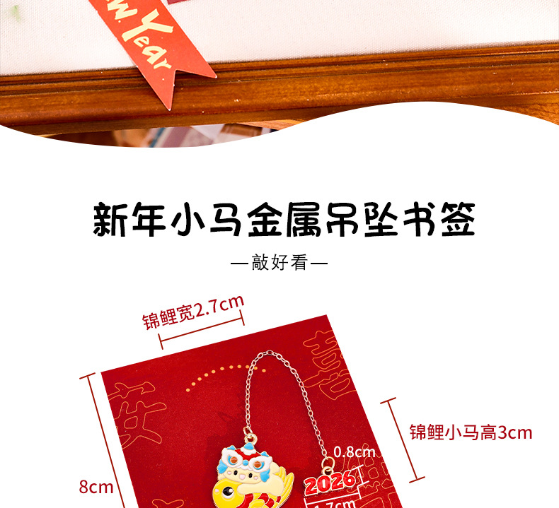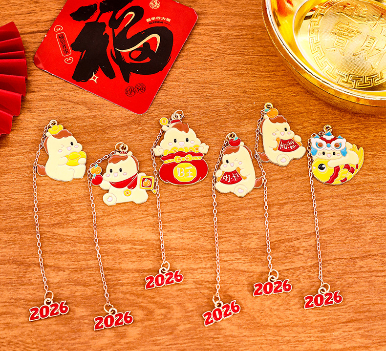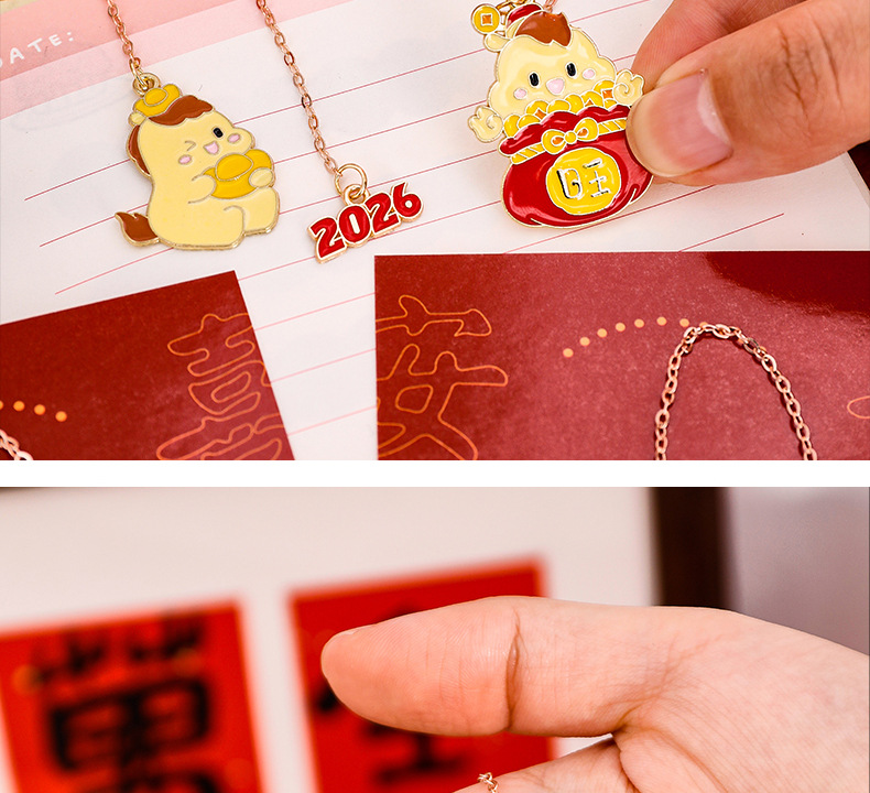 新年金属书签学生节日精美礼物链条书签夹文具小礼品马年小挂件