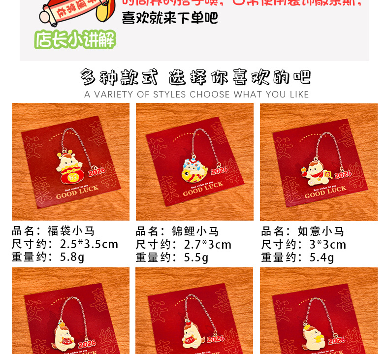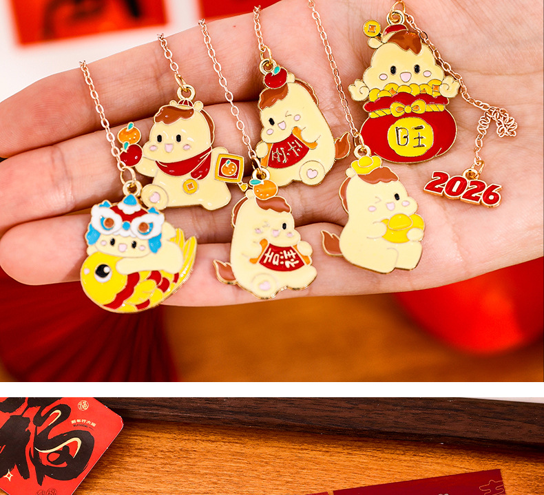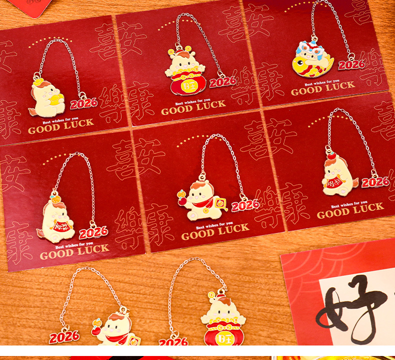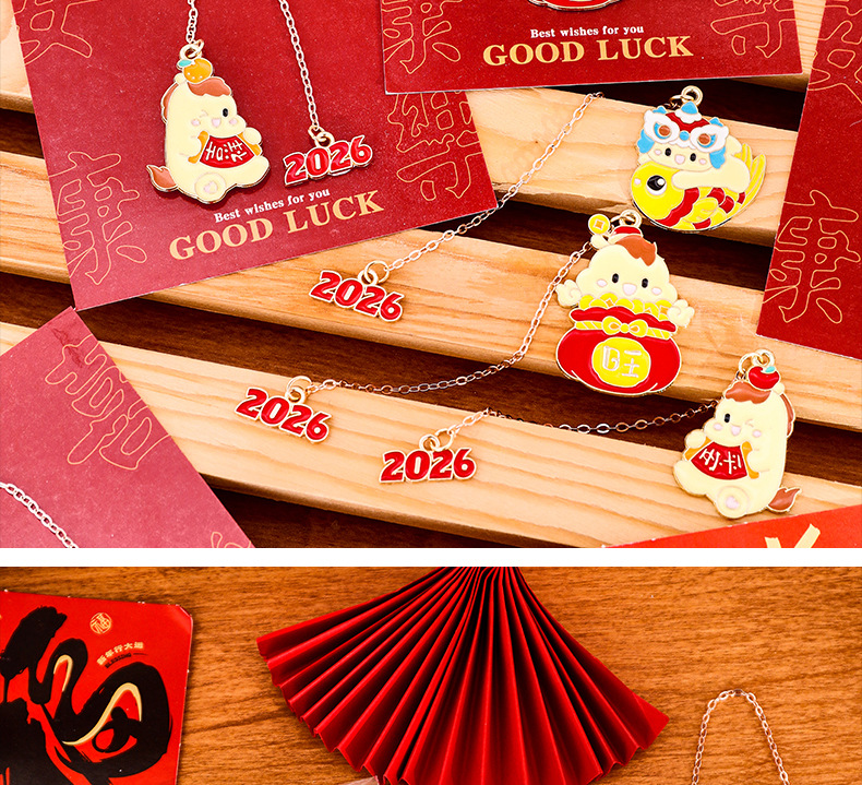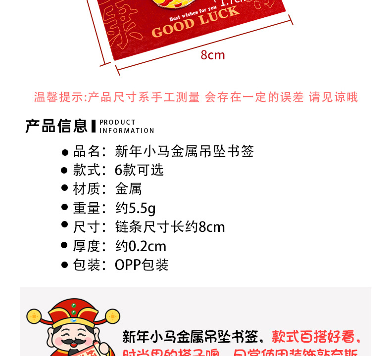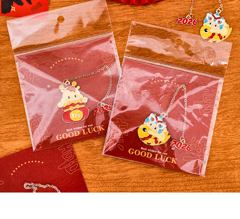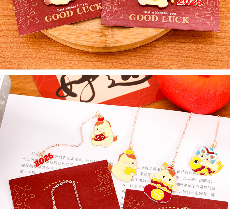 新年金属书签学生节日精美礼物链条书签夹文具小礼品马年小挂件