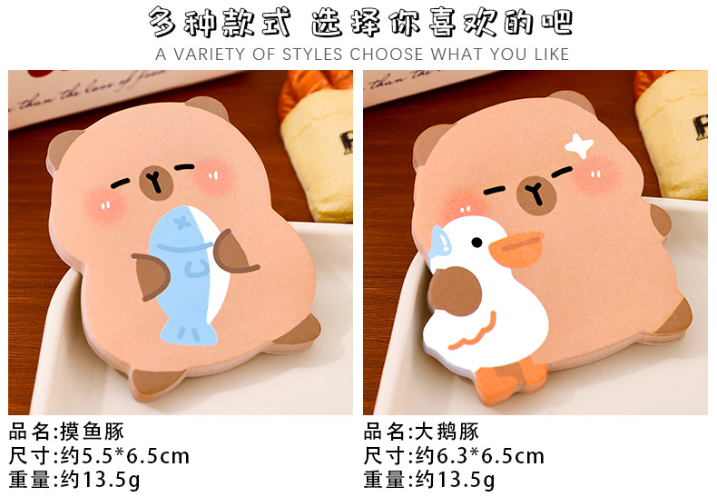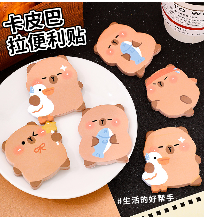 卡皮巴拉便利贴学生高颜值可爱n次贴便签纸卡通水豚文具粘性便签