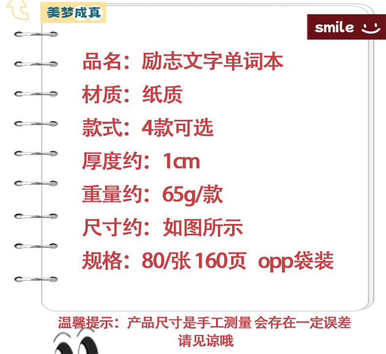 励志文字笔记本小学生初中生文具小礼品奖品便携式单词本纸质本子