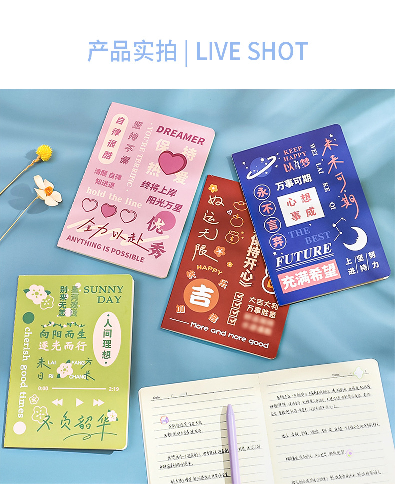 励志文字a5本 学生文具记事车线本办公作业练习本创意A5横线本子