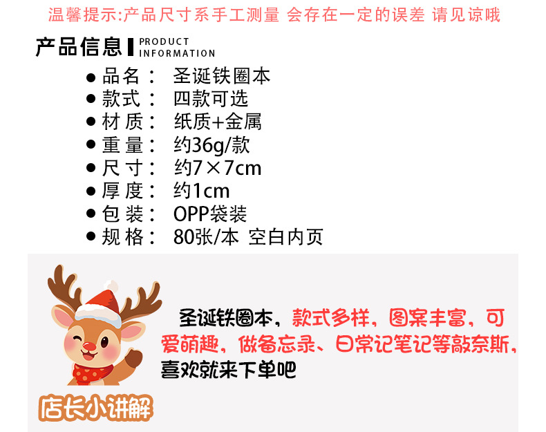 卡通圣诞铁圈本全班奖励礼物空白便签本学生圣诞节文具礼品记事本