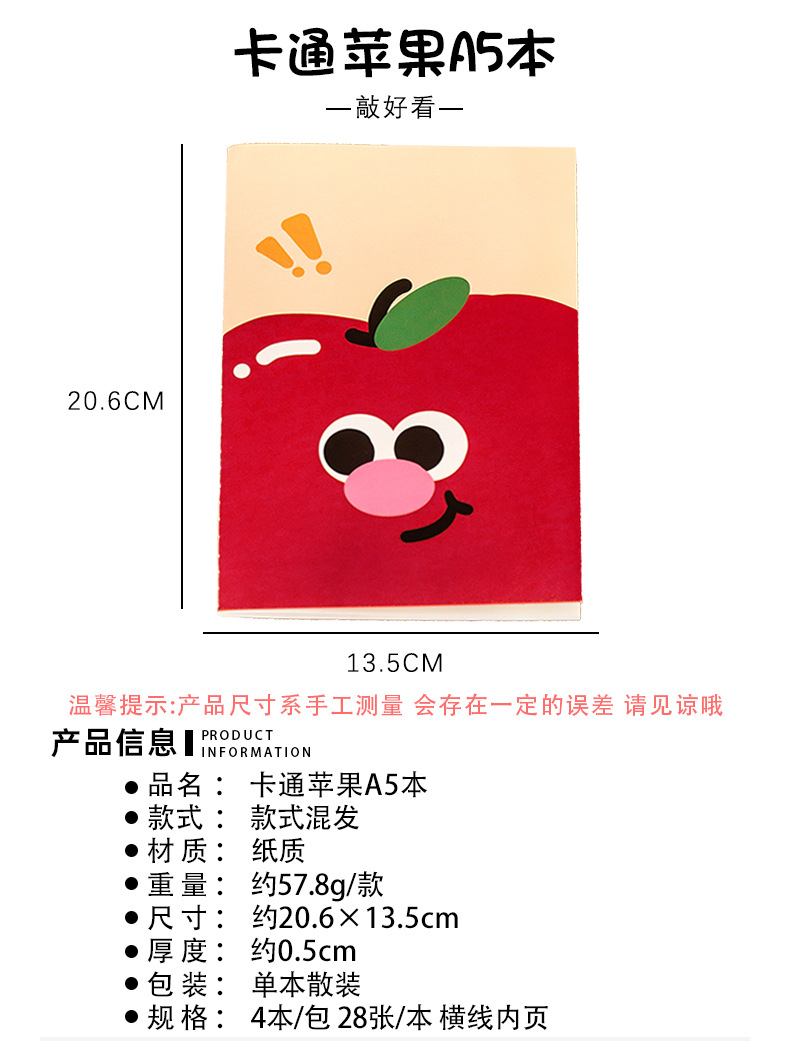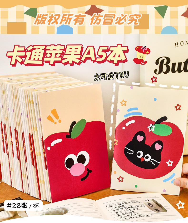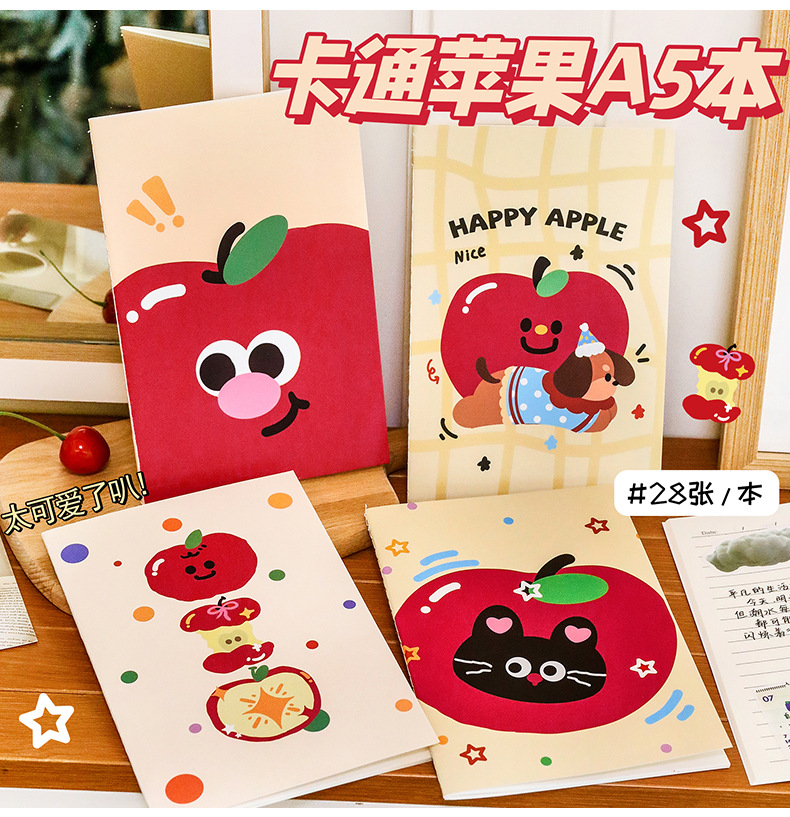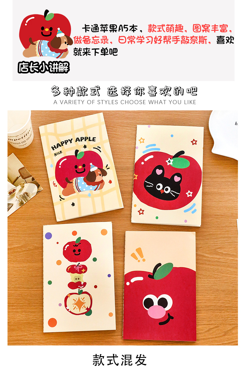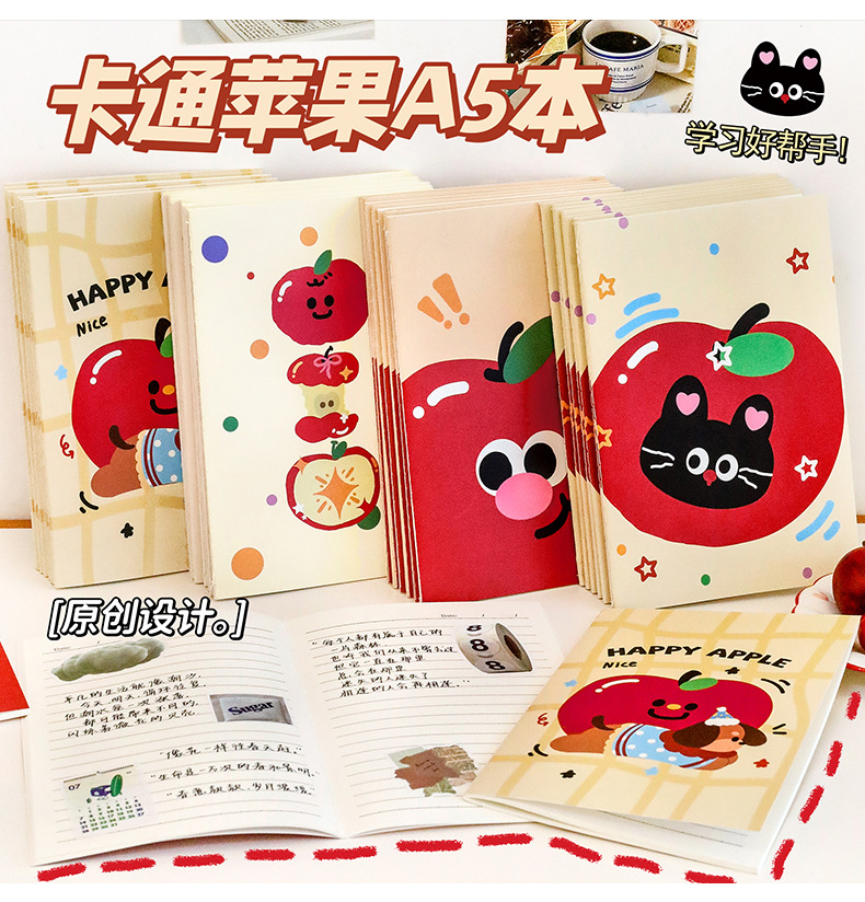 可爱苹果猫咪a5本学习文具全班奖励礼物记事本学生文具礼品笔记本