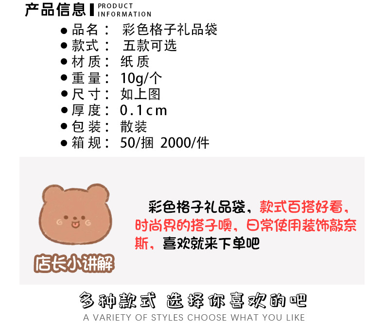 彩色格子礼品袋节日小礼物包装袋少女小清新小礼品收纳整理袋子